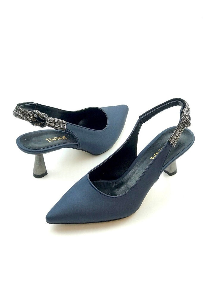 Şatra Kadın Abiye Ayakkabı - Lacivert Saten