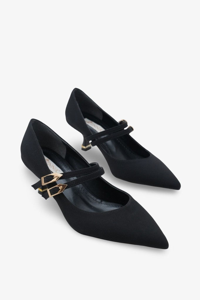 Glorinda Kadın Topuklu Bantlı Ayakkabı - Siyah Nubuk