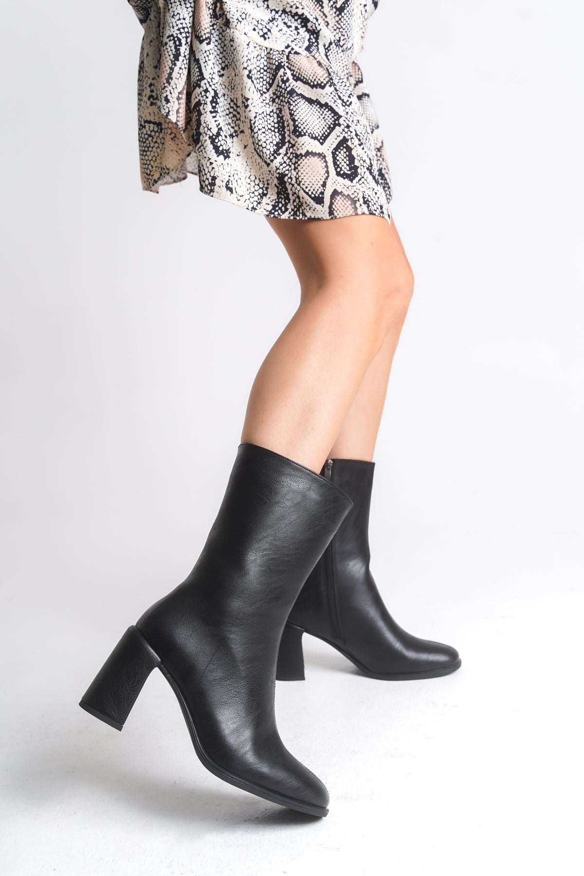 Kireya Kadın Yuvarlak Rahat Kalıp Topuklu Bot Siyah