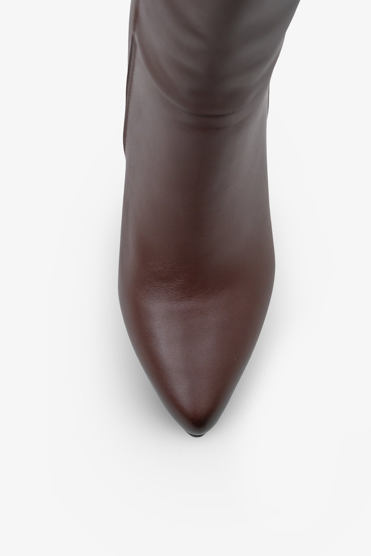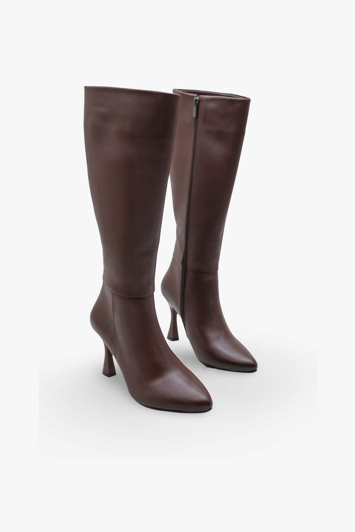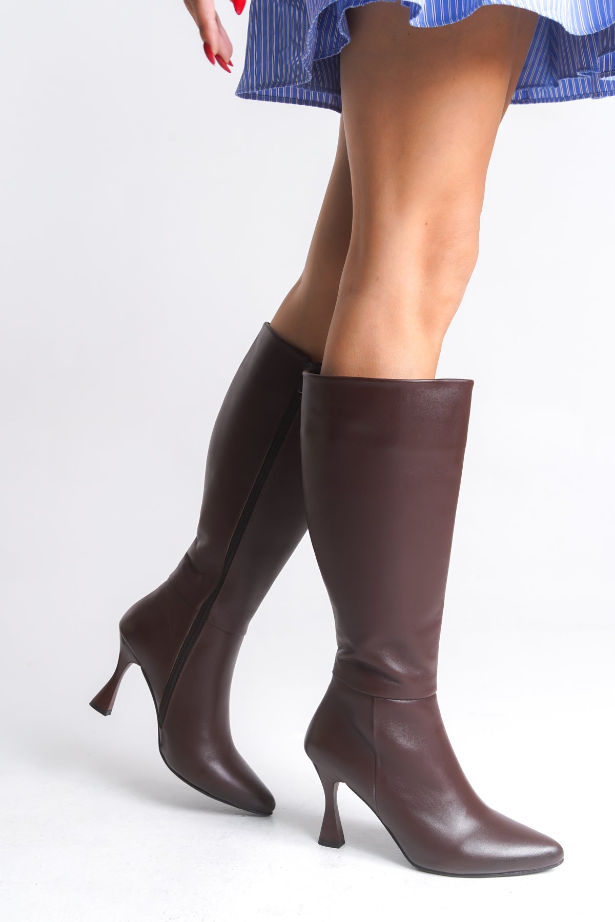 Lavena Kadın Hakiki Deri Topuklu Çizme - Kahve