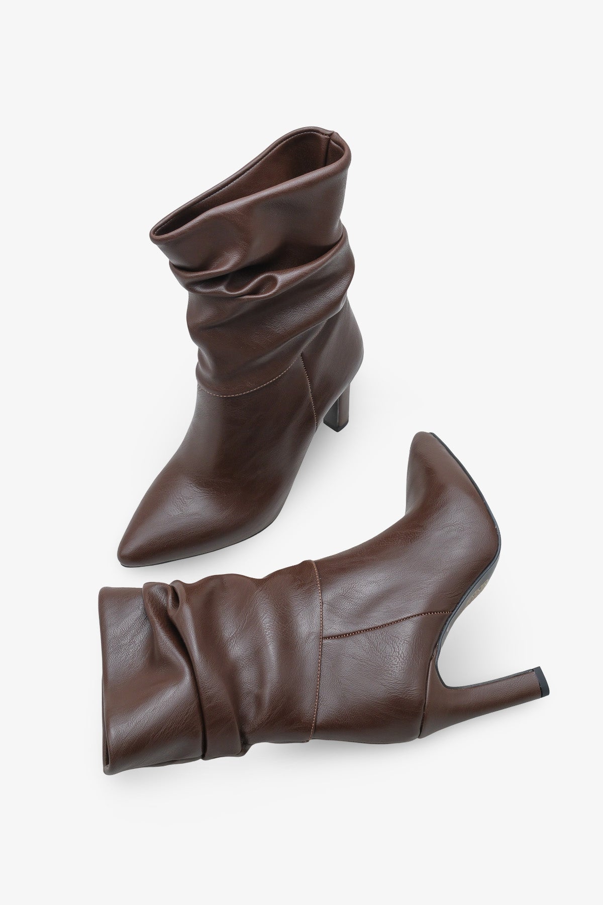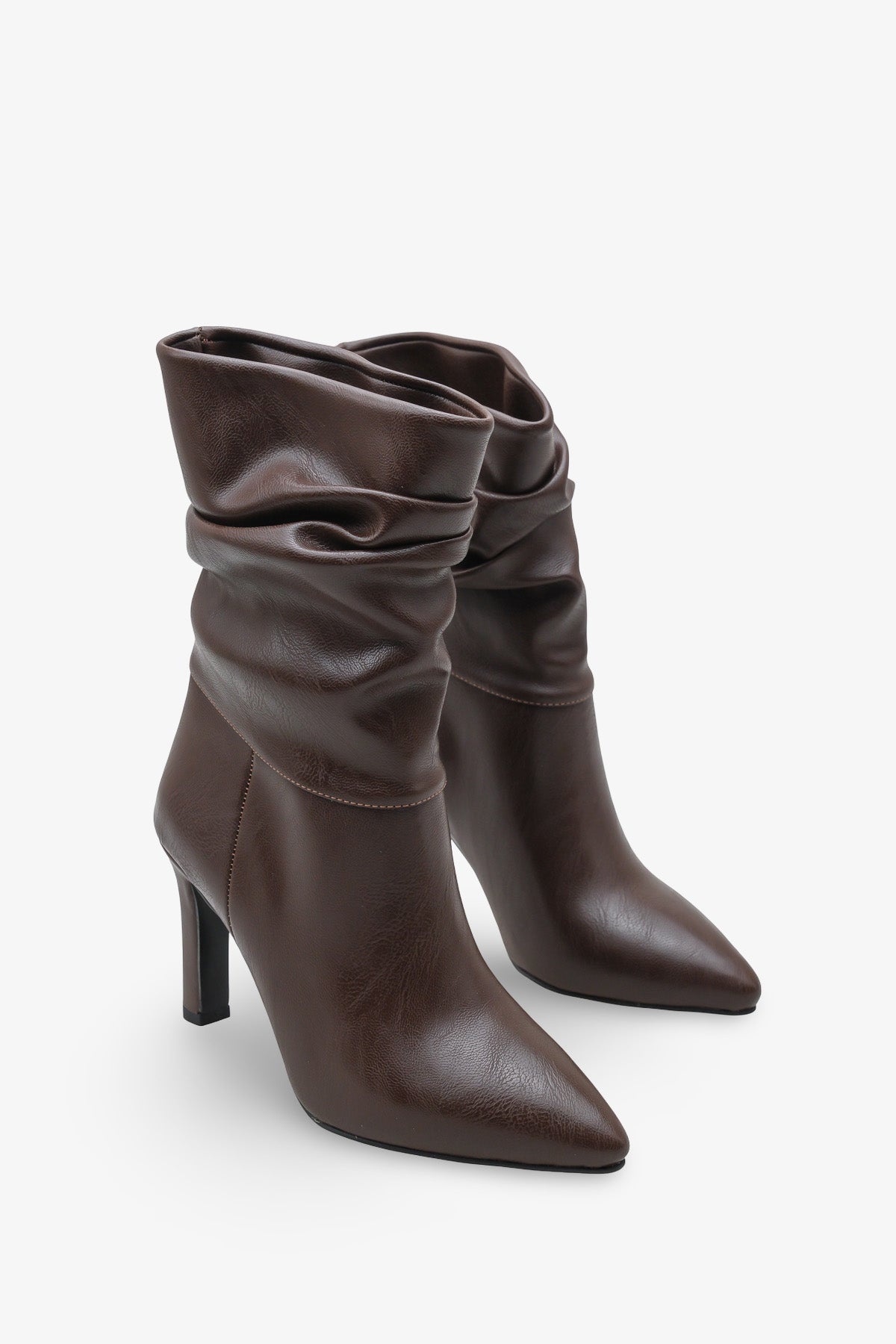Malira Kadın Büzgü Detaylı Topuklu Bot - Kahve