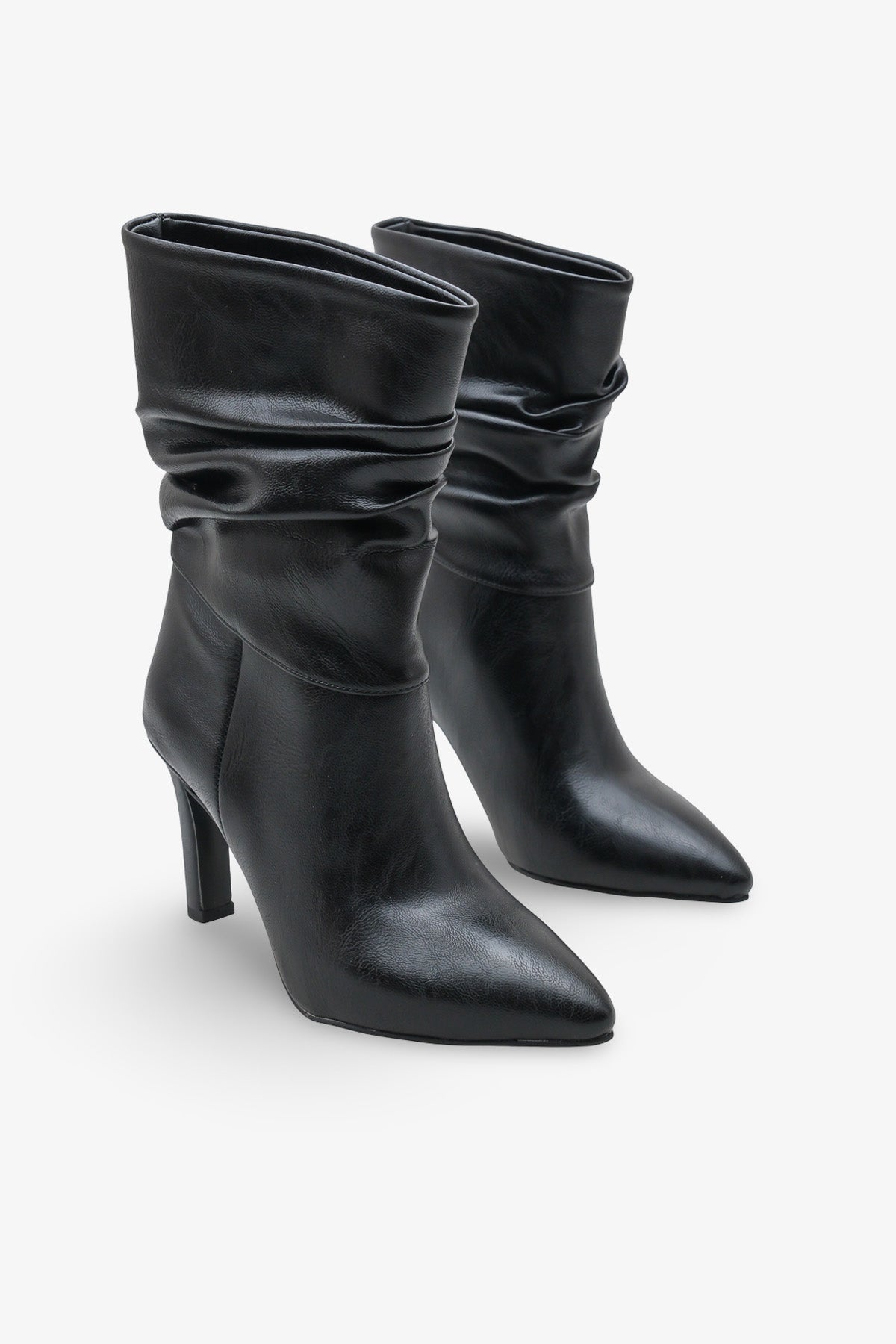 Malira Kadın Büzgü Detaylı Topuklu Bot - Siyah