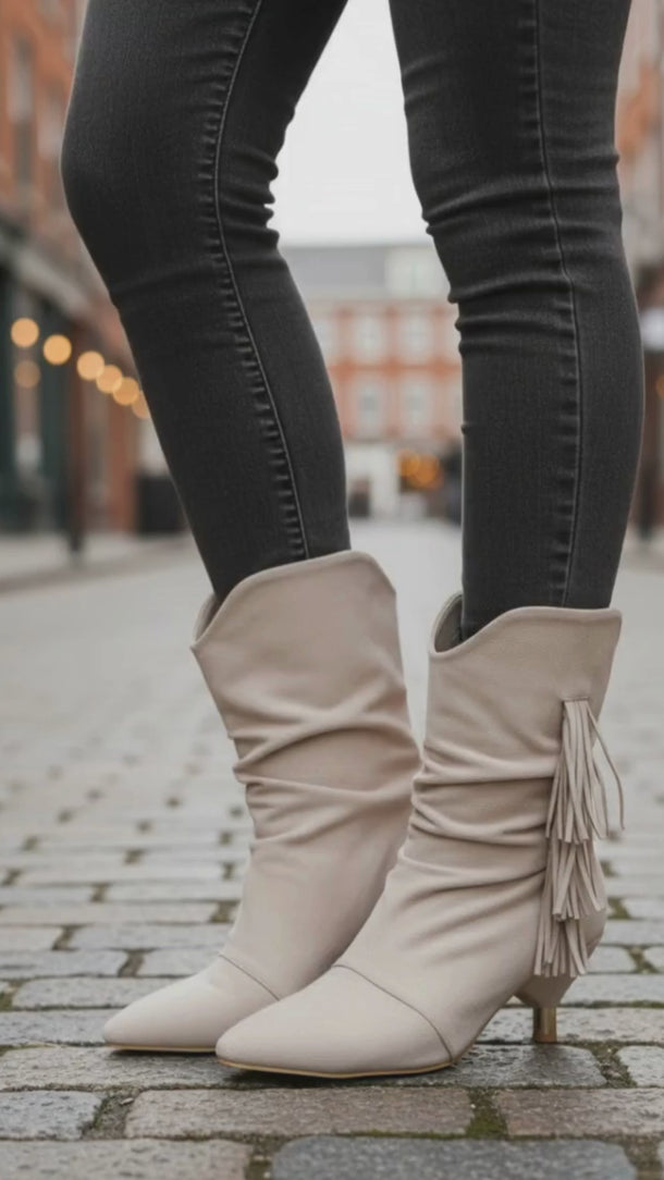 Revaya Kadın Süet Püsküllü Bot - Bej Süet