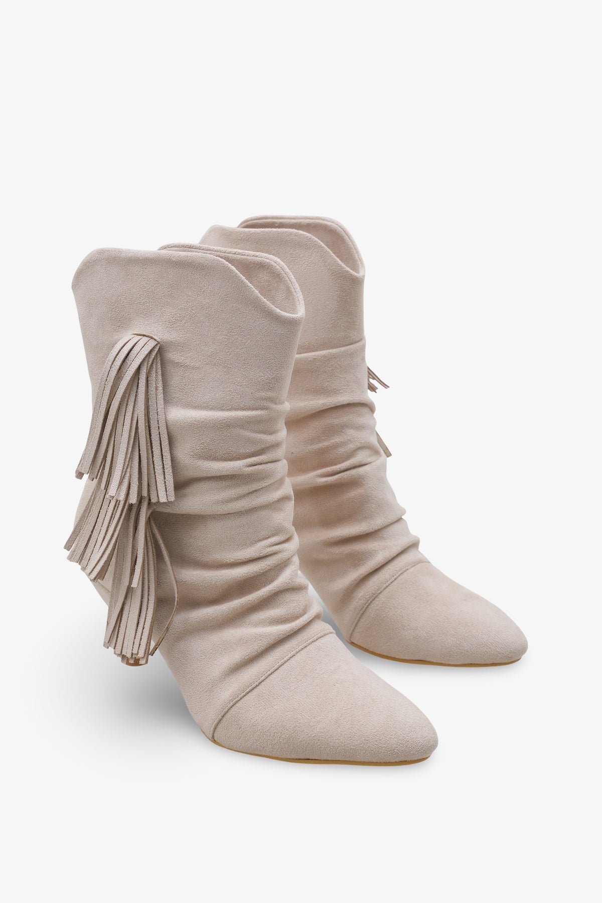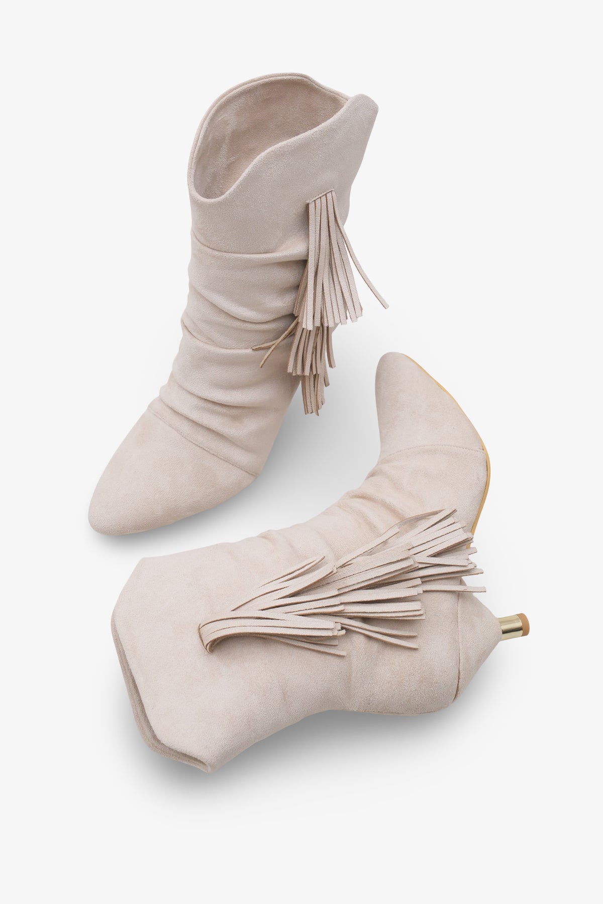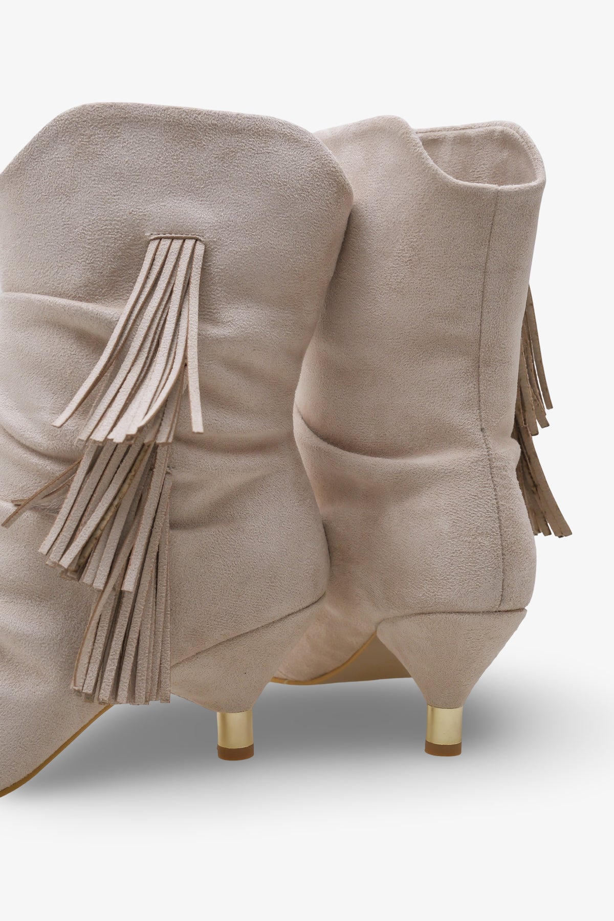 Revaya Kadın Süet Püsküllü Bot Bej Süet