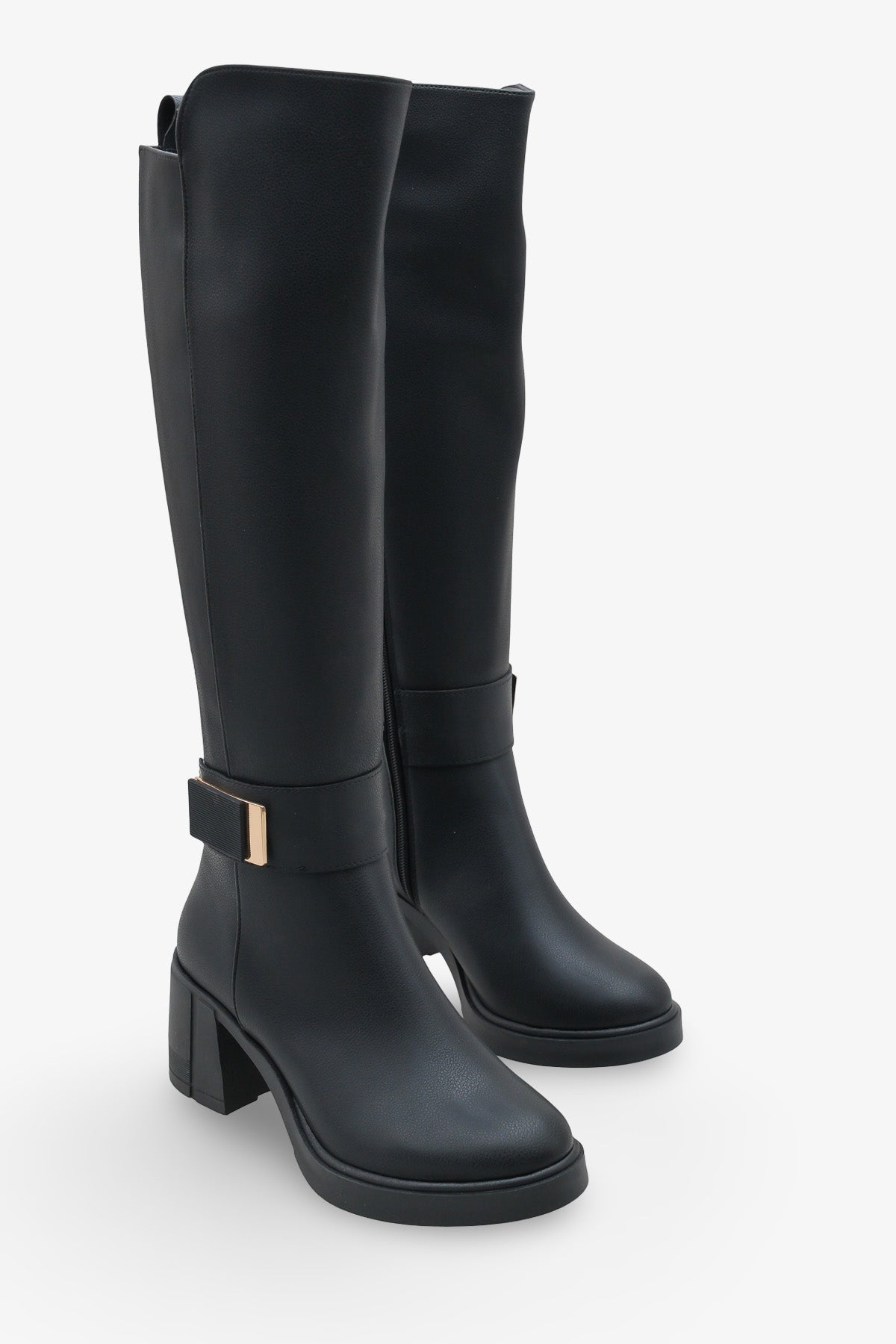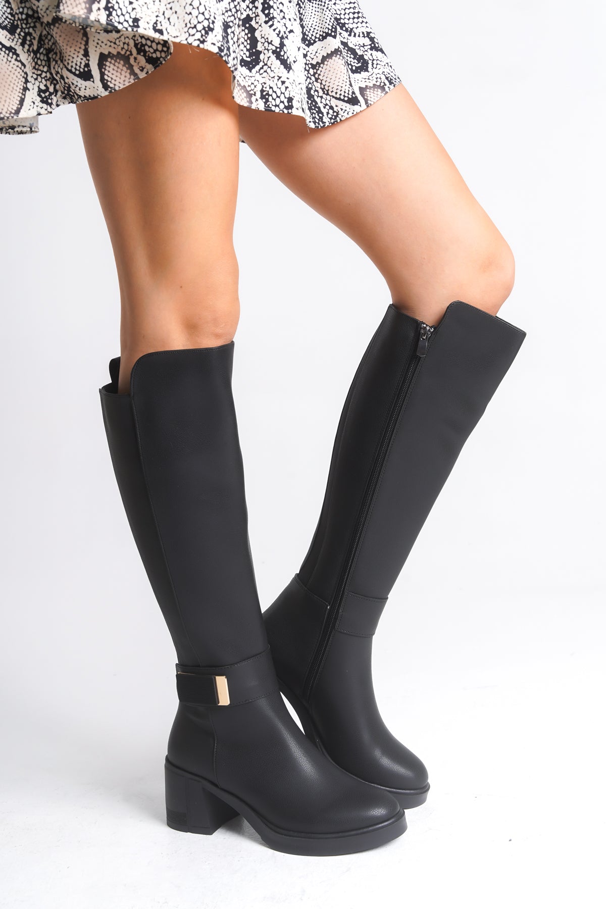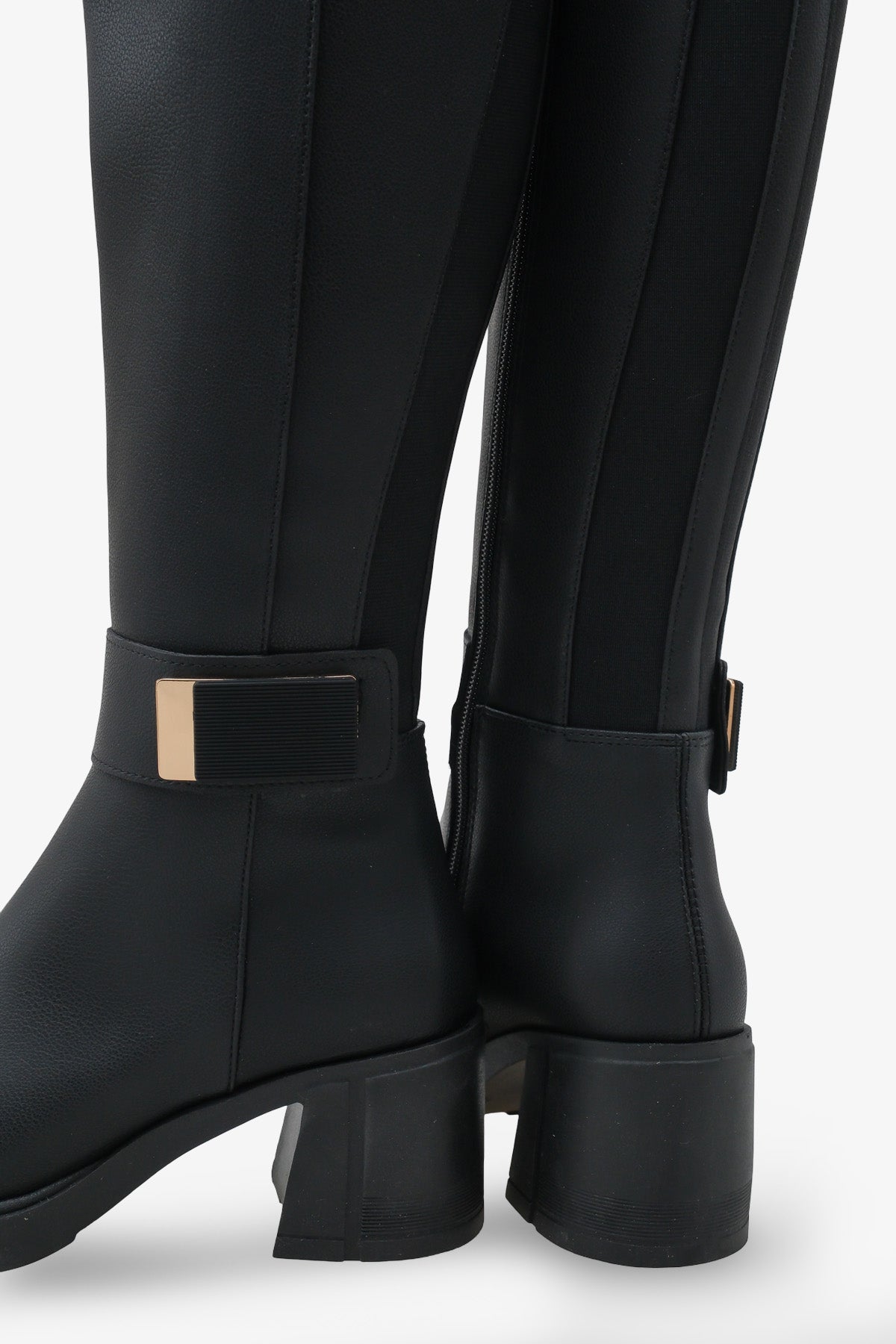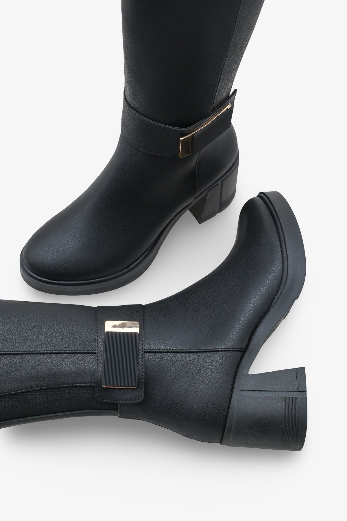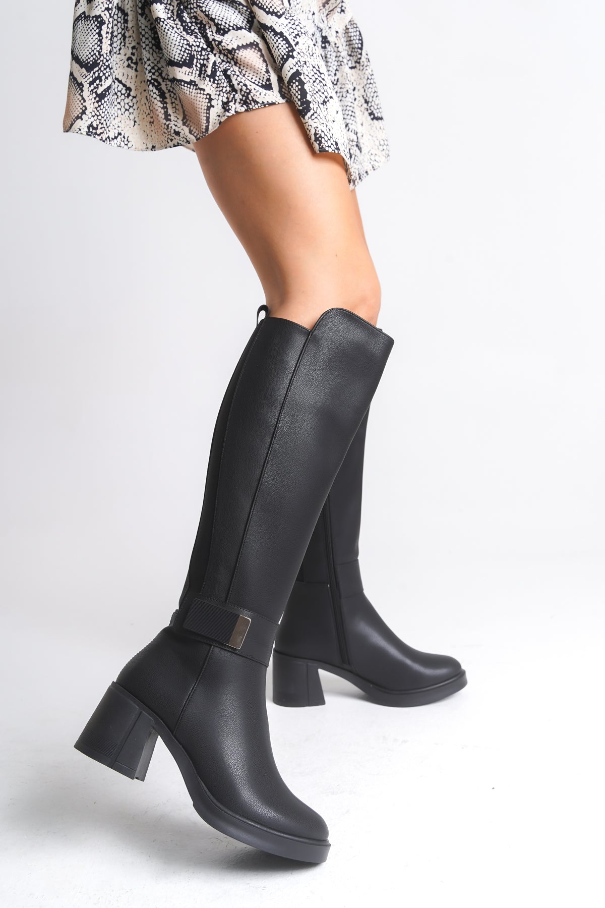 Tihana Kadın Arka Lastikli Topuklu Çizme - Siyah