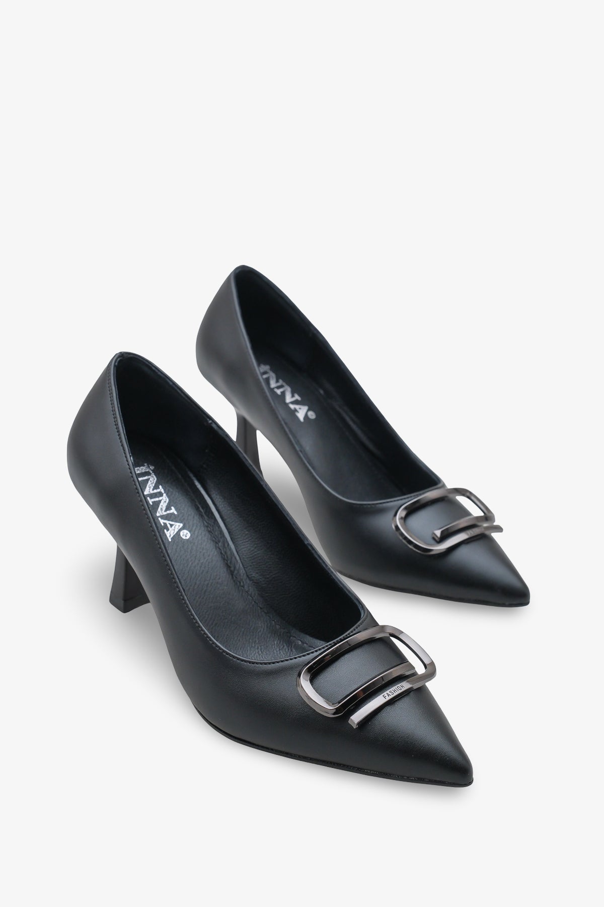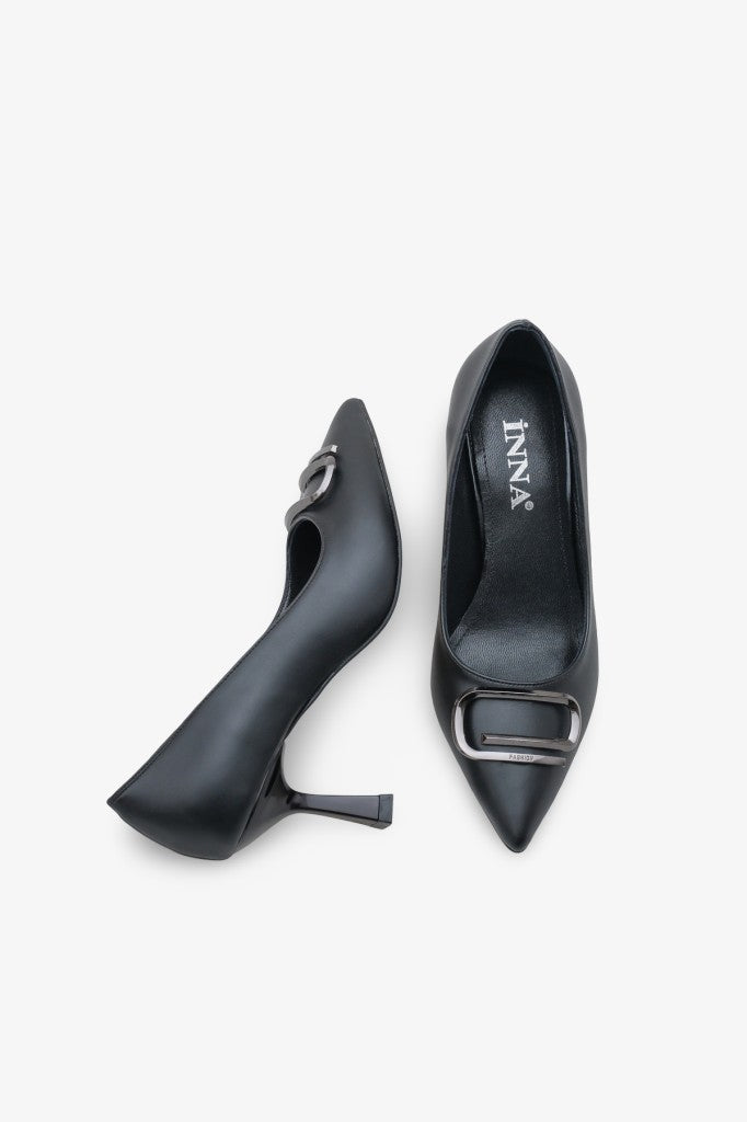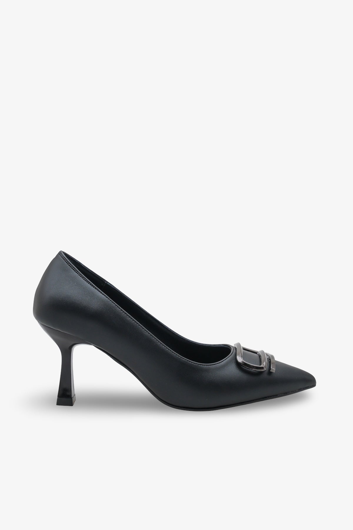 Velmira Tokalı Kalın Topuklu Klasik Ayakkabı - Siyah