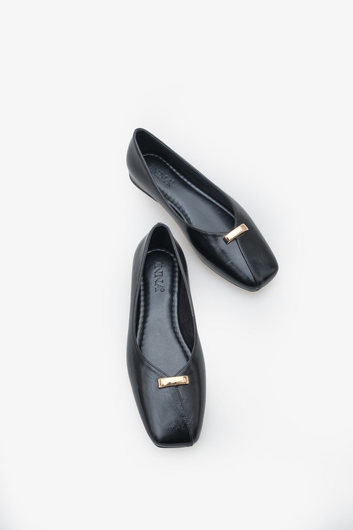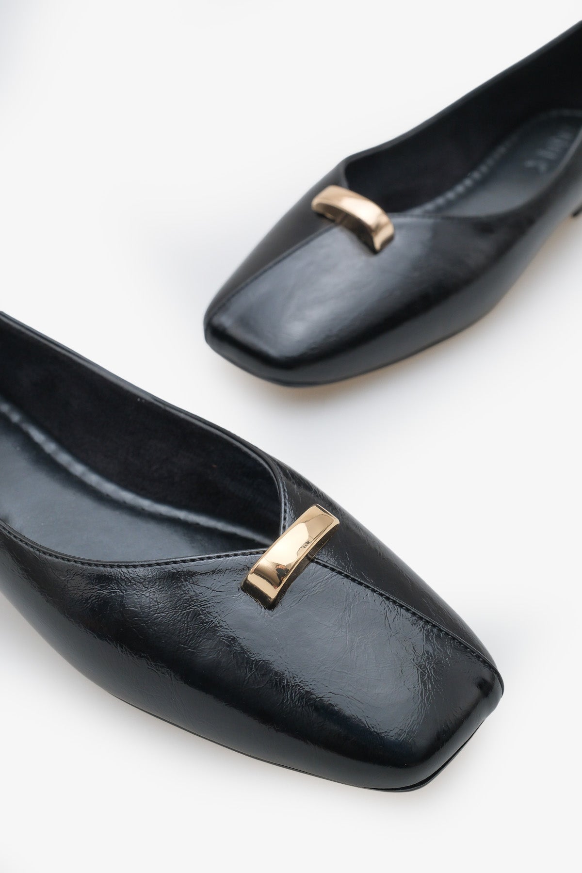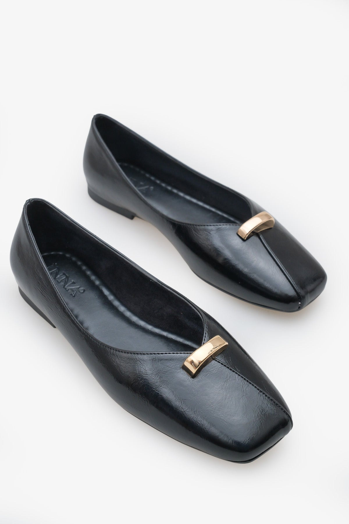 Modern küt burun kesimi ve ön kısmındaki minimal gold metal aksesuar, sade tasarımına şık ve trend bir karakter kazandırır.