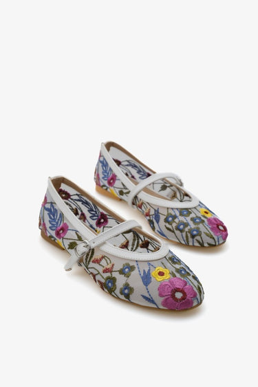 Laklassa Çiçek İşlemeli Kadın Babet - Beyaz
