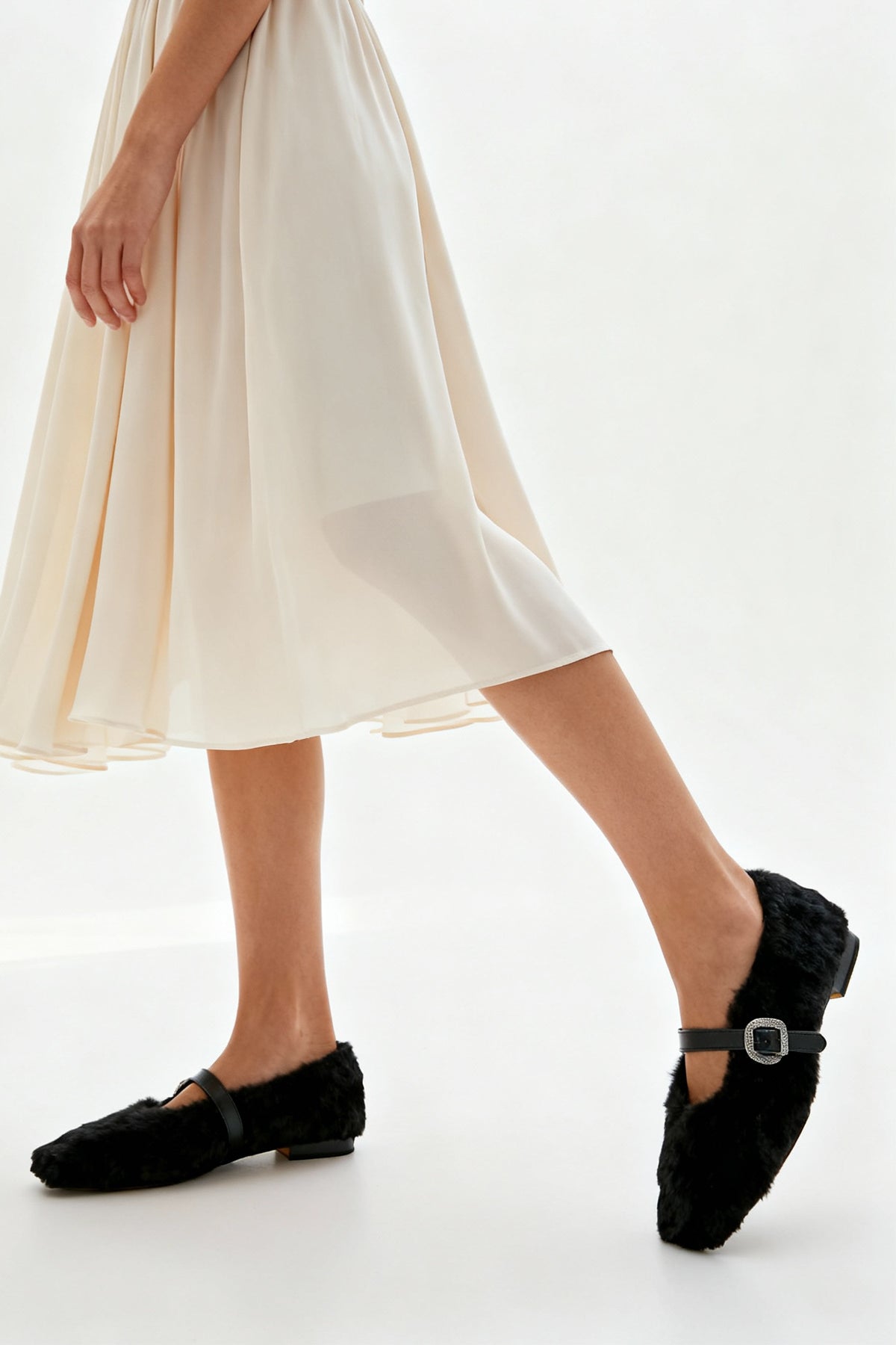 • Ayak üstünden geçen ve zarif bir tokayla ayarlanan klasik Mary Jane bandı, hem nostaljik bir şıklık sunar hem de ayağı nazikçe kavrar.