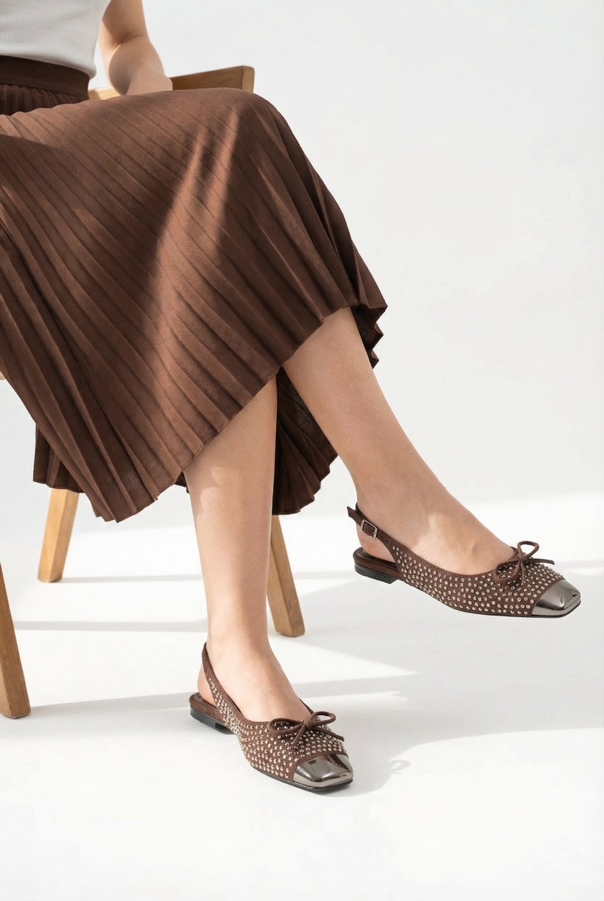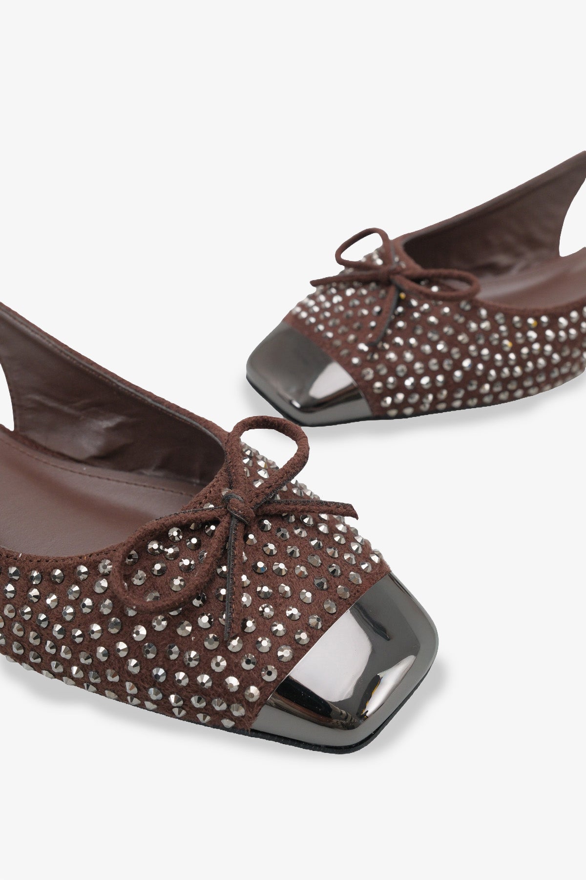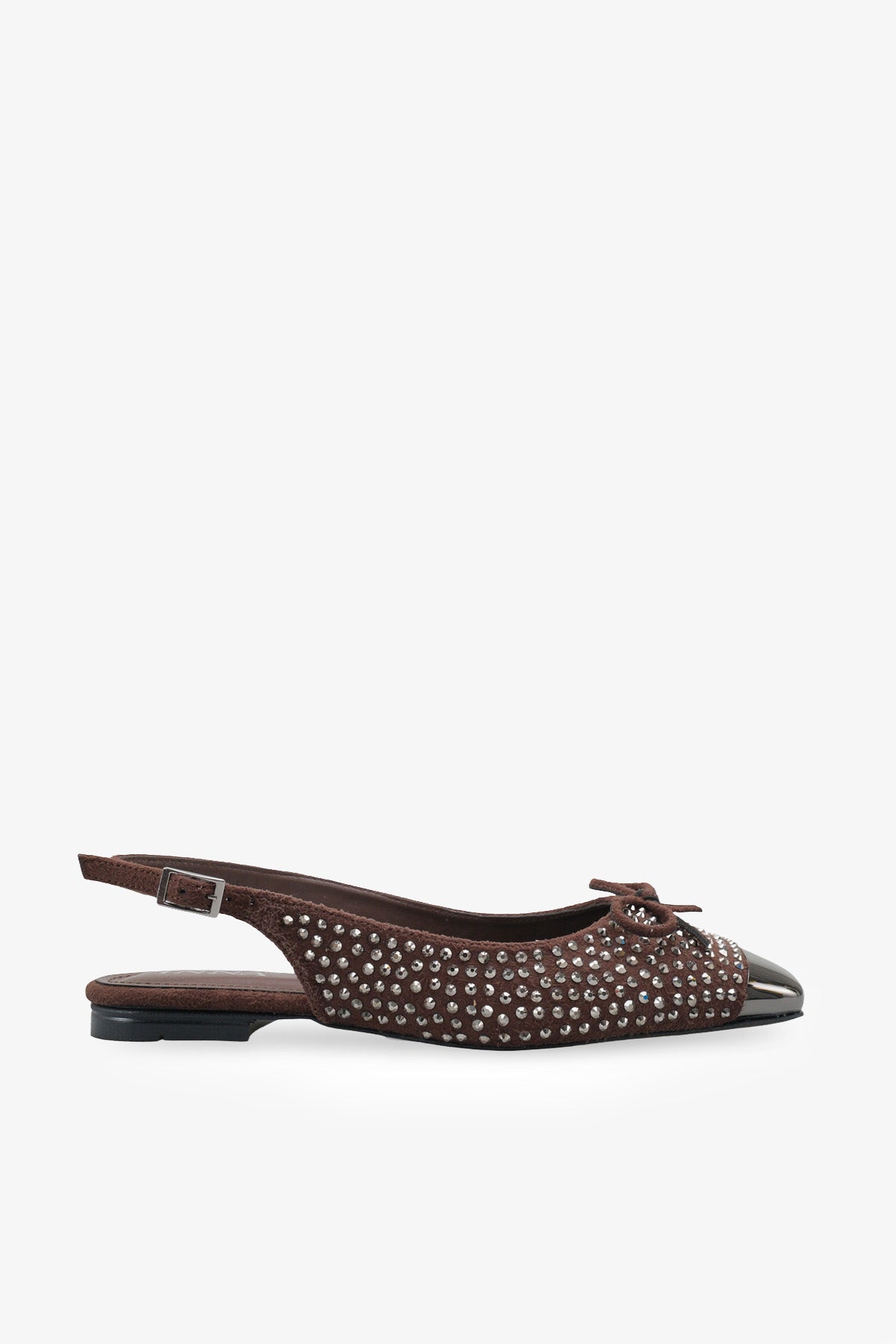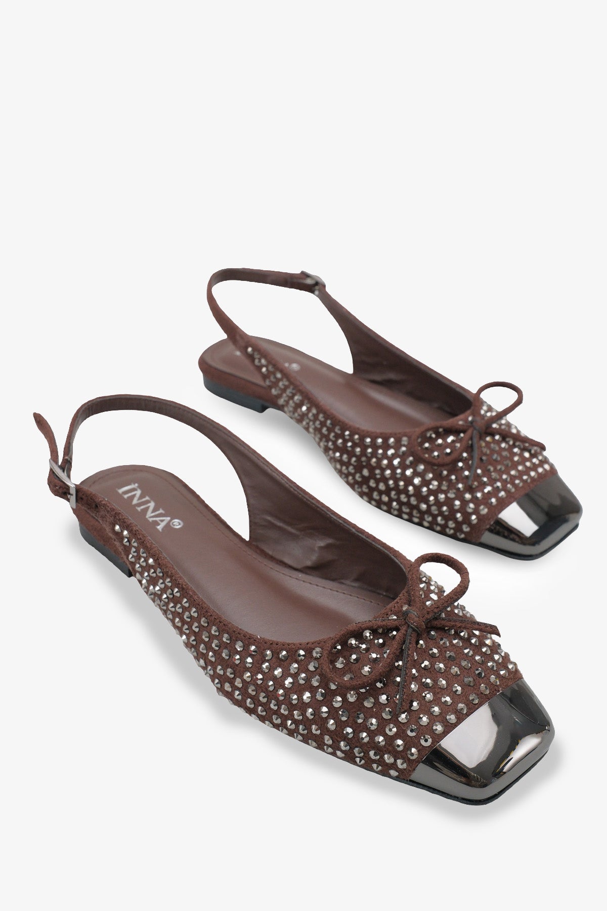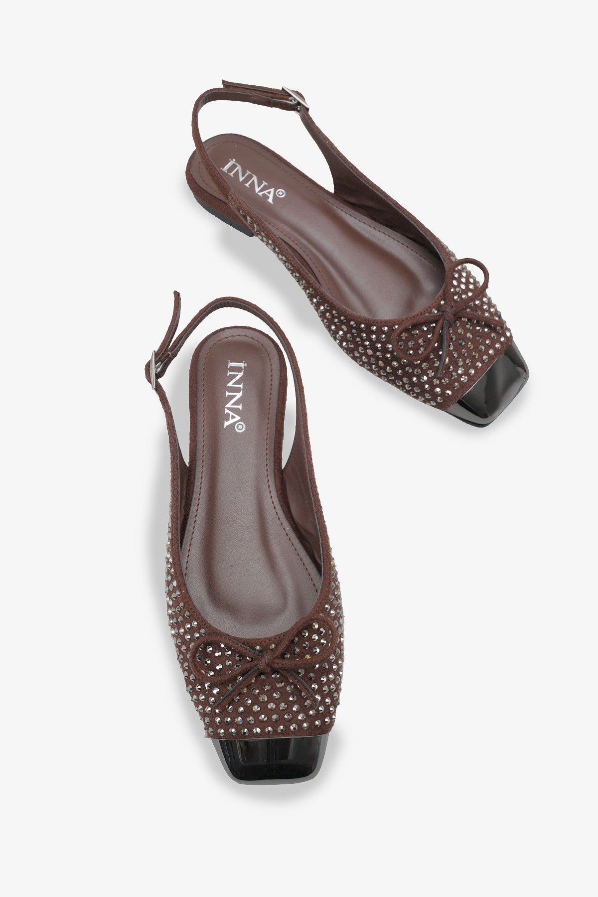 Modern kare burun tasarımı ve dikkat çeken metalik burun ucu, klasik babet şıklığını trend bir görünümle buluşturur.