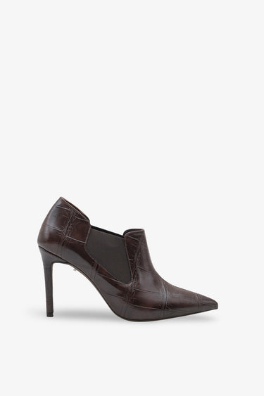 Orvella Sivri Burun İnce Topuklu Kadın Bot - Kahve Kroko