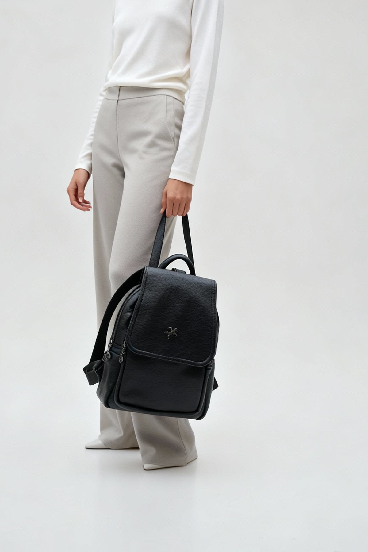 Dokulu ve kaliteli suni deri yüzeyi, klasik siyahın asaletini modern bir tasarımla buluşturarak stilinize şıklık katar.