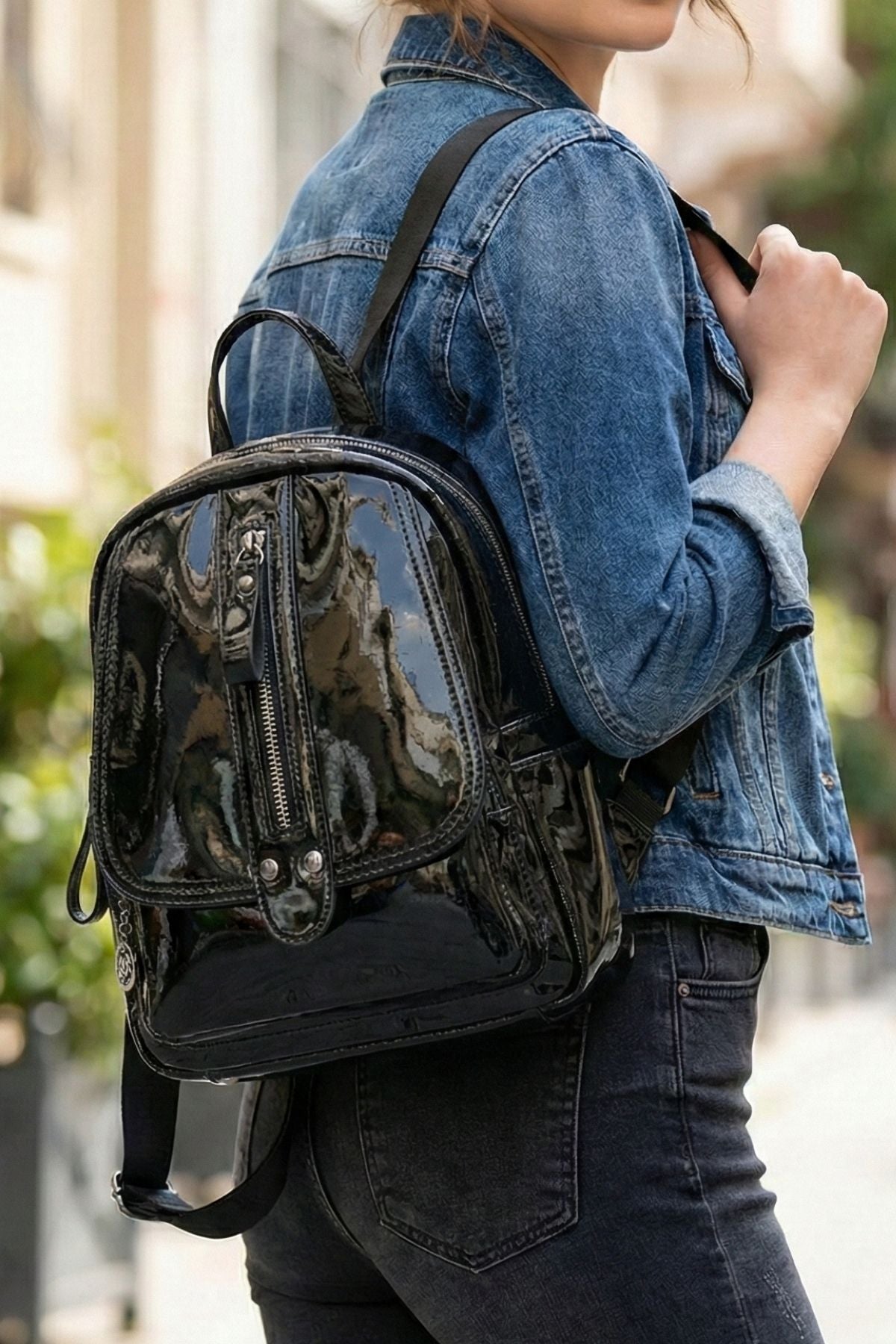 Minette Kadın Günlük Sırt Çantası - Siyah Kırışık Rugan