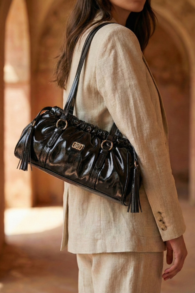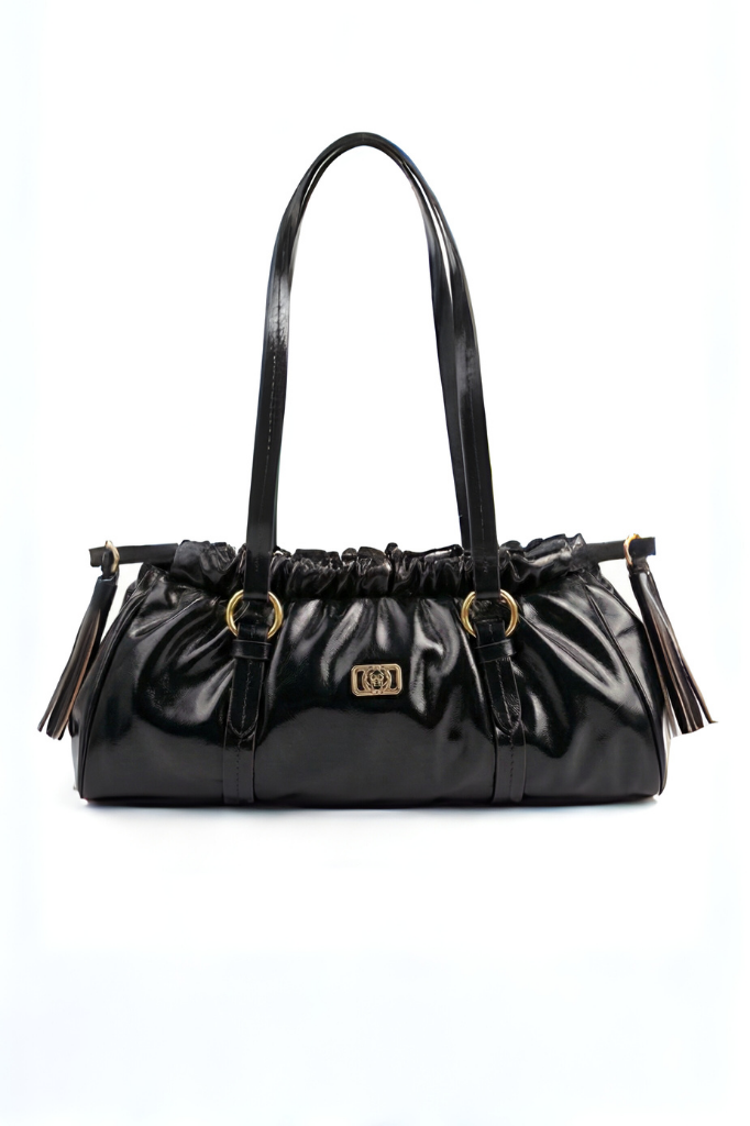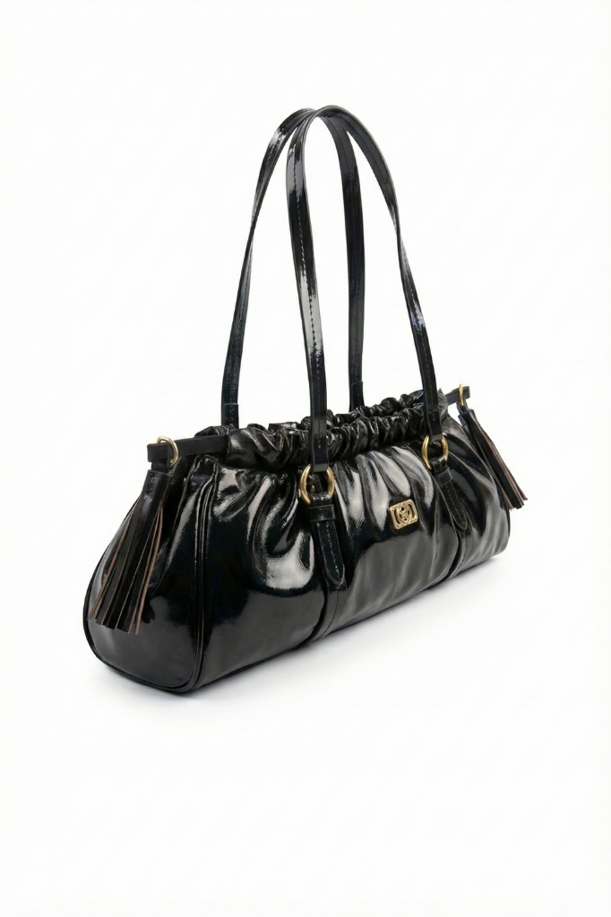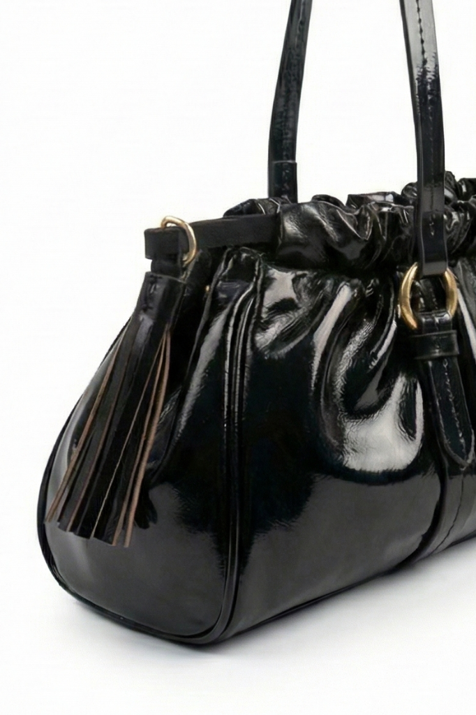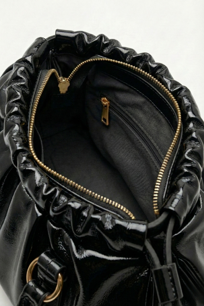 • Yumuşak dokulu suni deri yüzeyi ve büzgülü modern formu ile günlük stilinize sofistike ve trend bir hava katar.