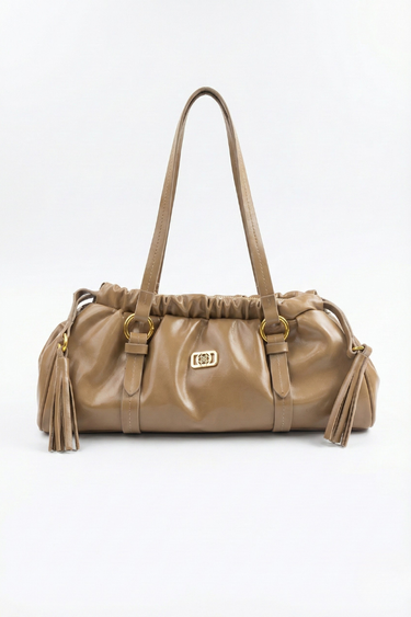 İdeal uzunluktaki omuz askıları ve hafif yapısı sayesinde gün boyu konforlu bir kullanım sunan bu vizon renkli çanta her kombine uyum sağlar.