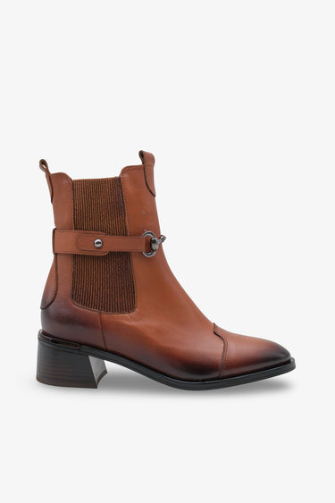 Hakiki deri yüzeyi ve bilek kısmındaki metal tokalı şerit detayı ile zenginleştirilen Poina lastikli taba bot yanlardaki esnek dokusuyla modern bir stil yaratır