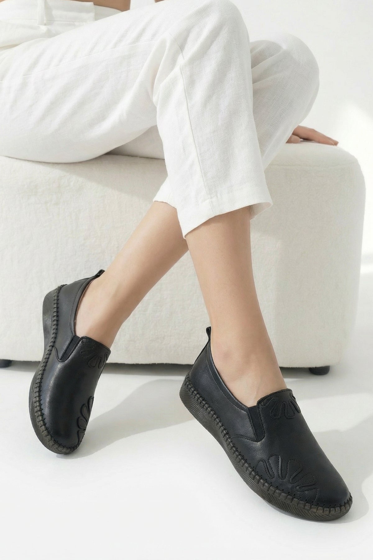 Renajs Kadın Hakiki Deri Günlük Ayakkabı - Siyah