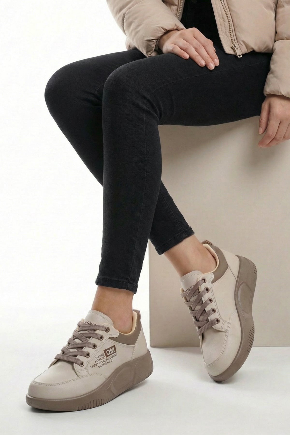 - Bej renginin yumuşak ve ferah tonu, bu kalın tabanlı sneaker'a modern ve aydınlık bir hava katarak her mevsimin favorisi olmasını sağlar.