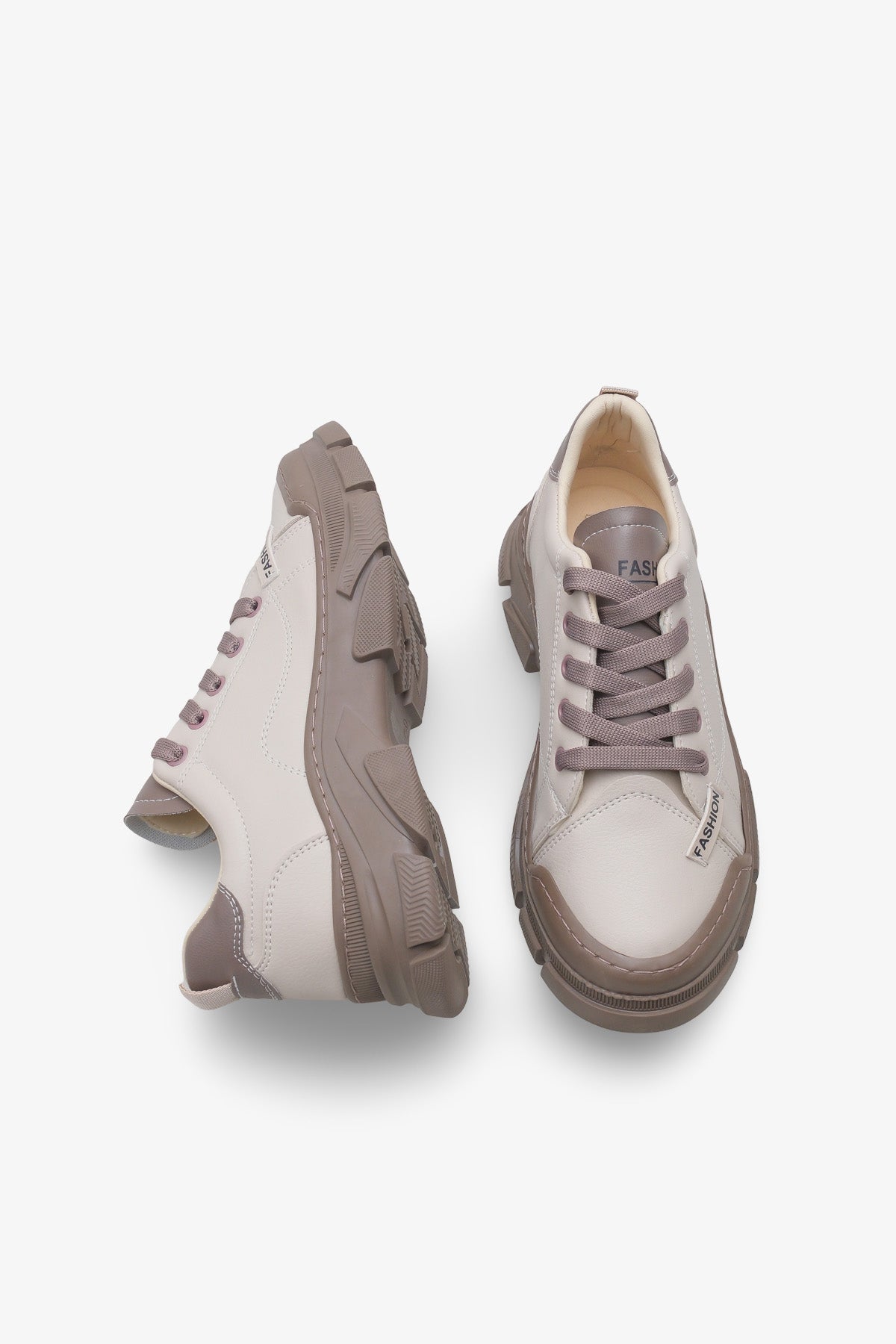 Krem-beyaz ve toprak tonlarının birleşimi, ürüne dinamik ve casual bir hava katmaktadır.