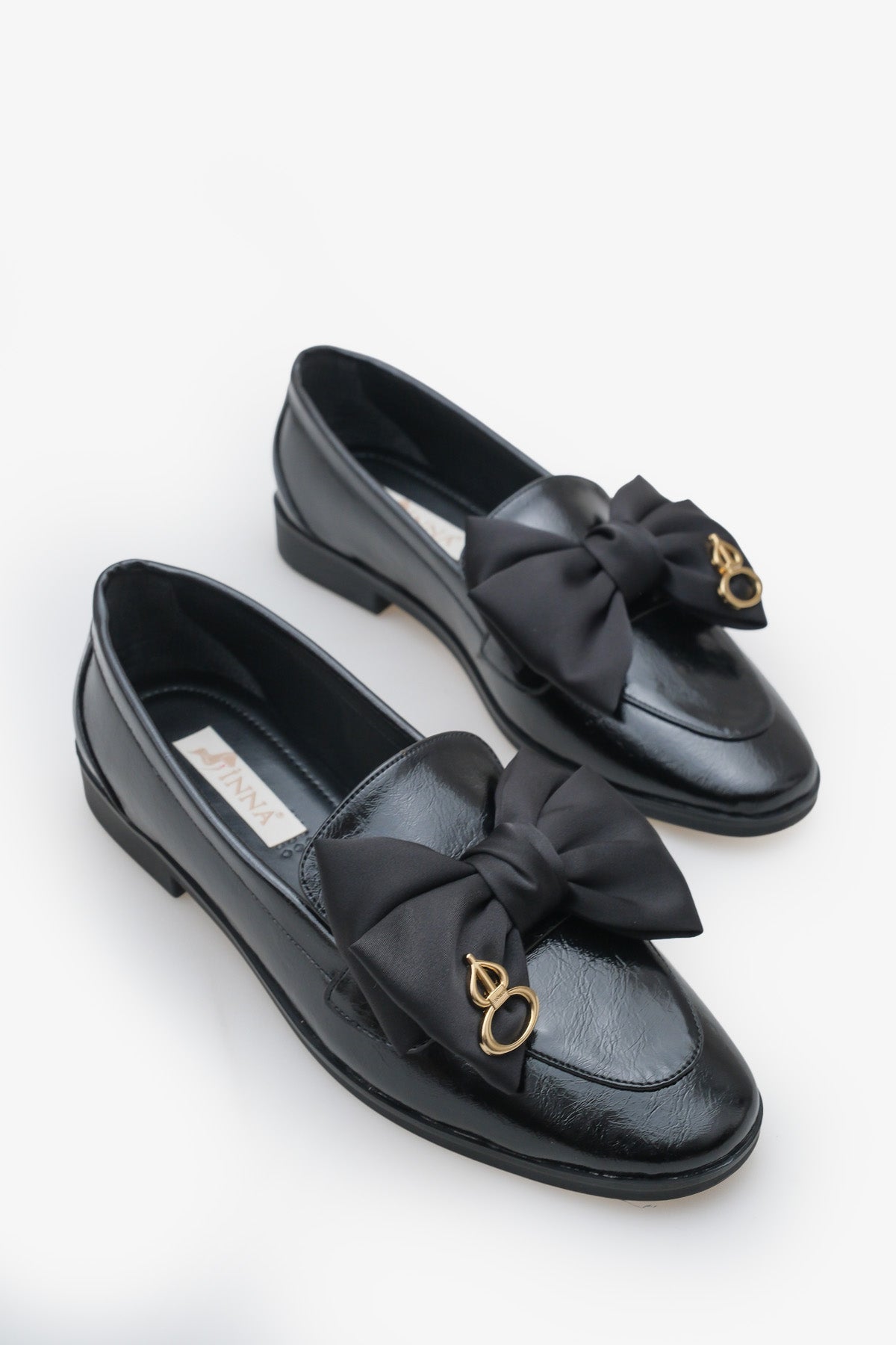 Ayakkabının üzerinde yer alan büyük, zarif fiyonk detayı ve ortasındaki gold aksesuar, ürüne sofistike bir hava katmaktadır.
