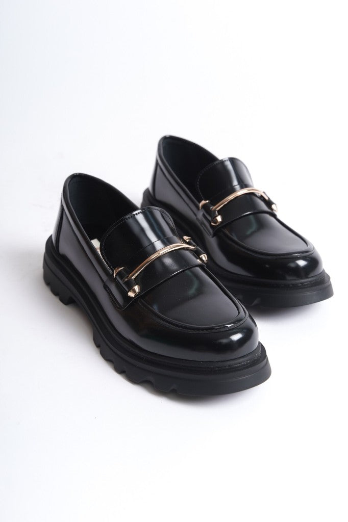 Vertos Kadın Loafer Ayakkabı - Siyah Rugan