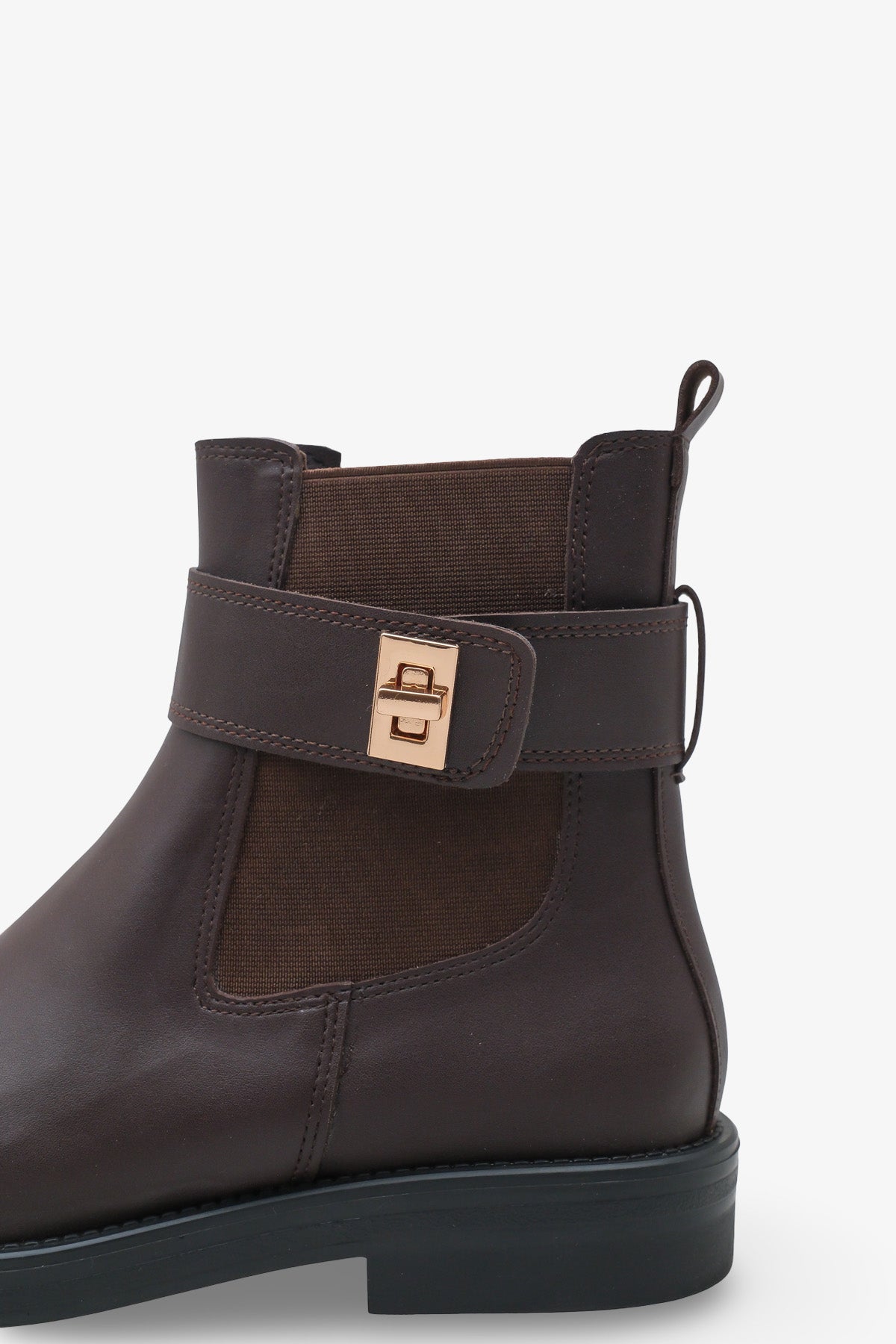 Gold Toka Işıltısı: Bilek kısmındaki bant üzerinde yer alan altın (gold) renkli metal kilit toka, siyahın sadeliğine modern ve lüks bir detay katarak botu sıradanlıktan uzaklaştırır.