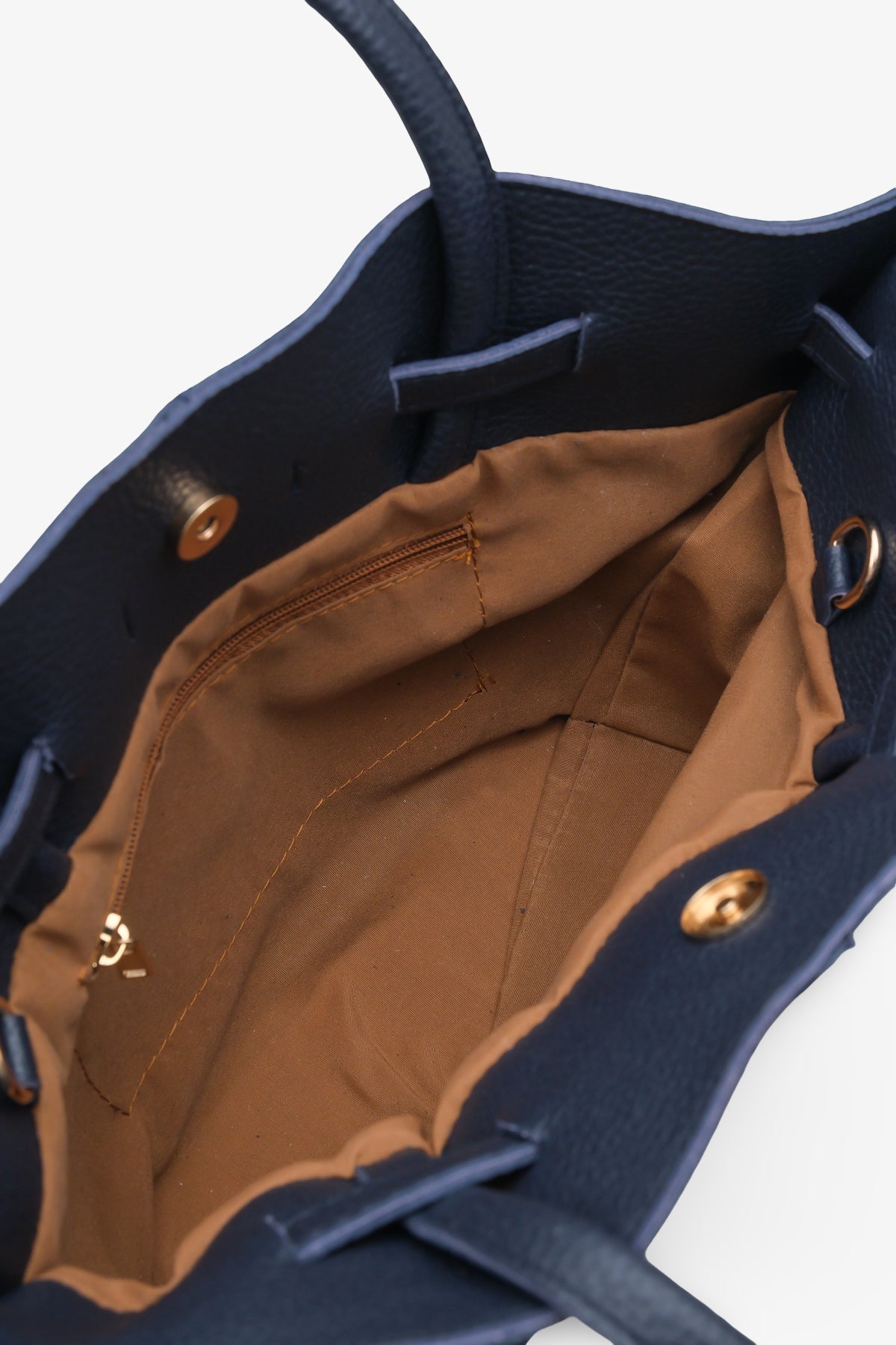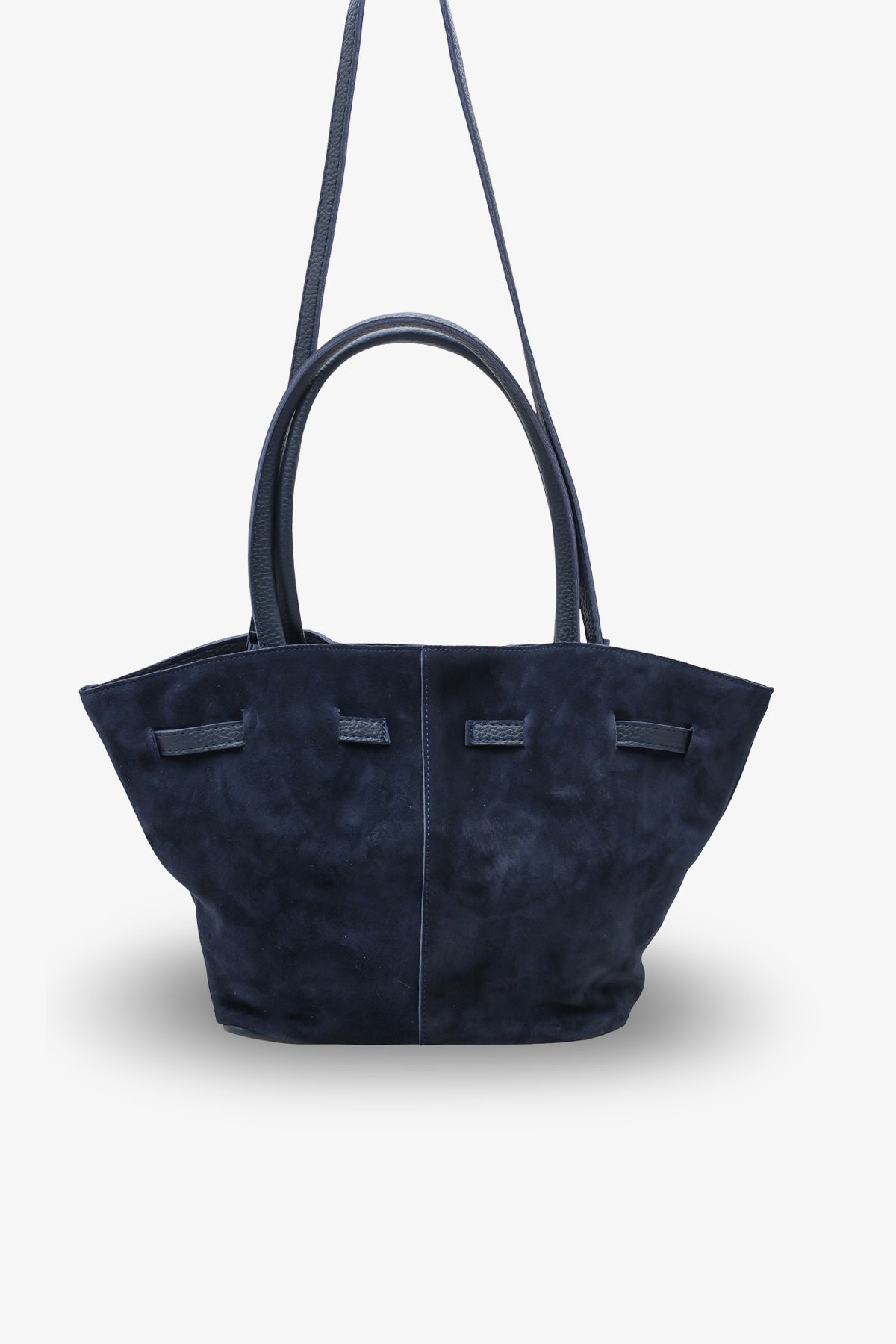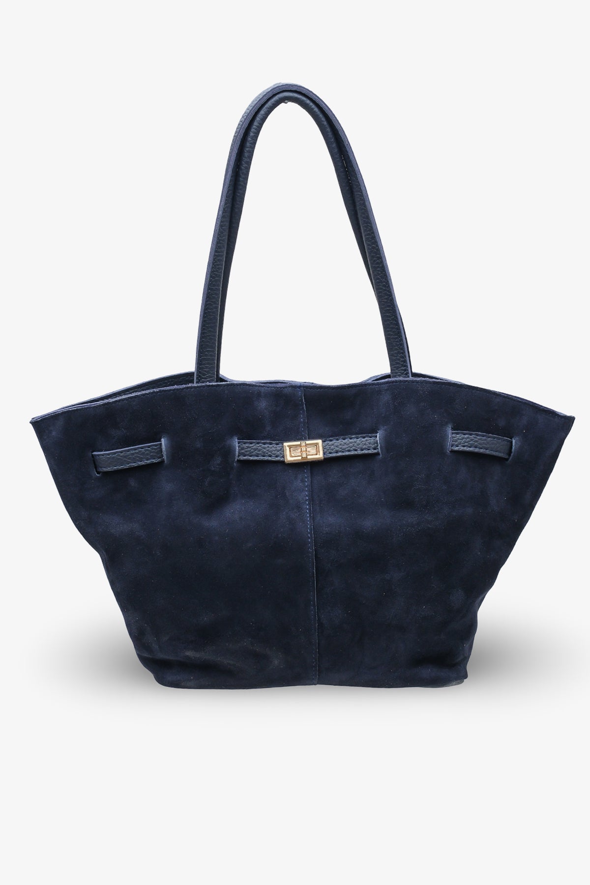 • Lacivert süet ve altın rengi detayların mükemmel uyumu, stil sahibi kombinlerinizi tamamlamak için ideal bir seçenektir.