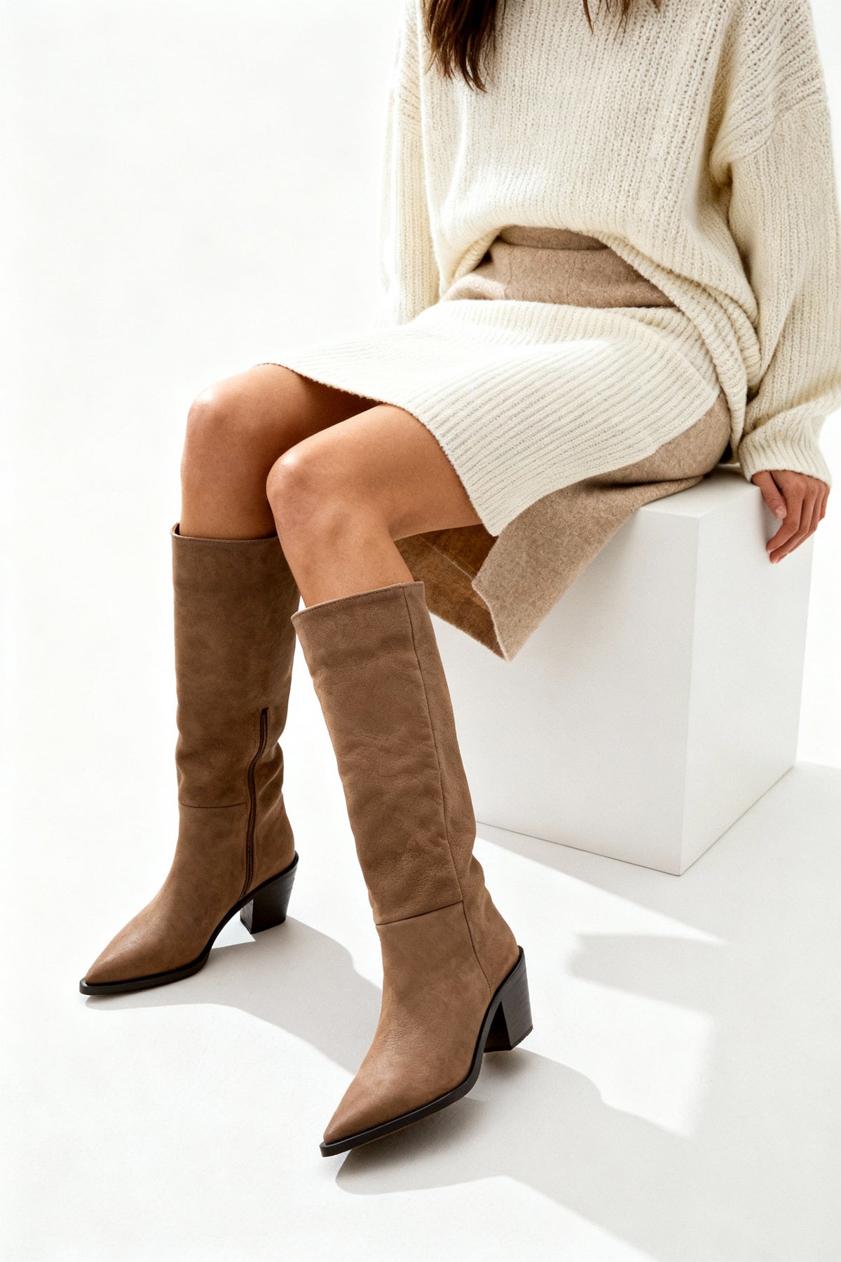 • Çizmenin yüzeyindeki sade dikiş detayları, süetin doğal güzelliğini vurgulayarak minimalist bir şıklık sunar.