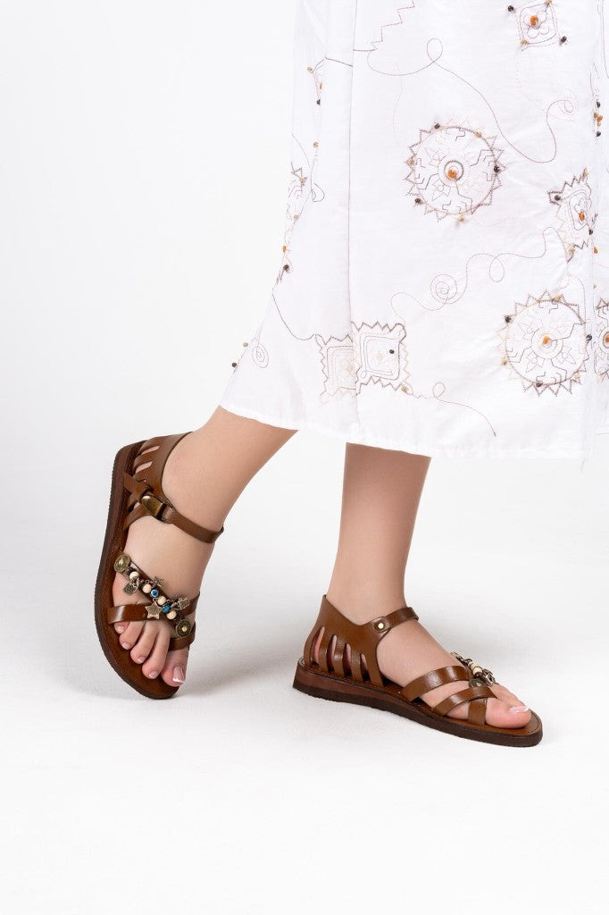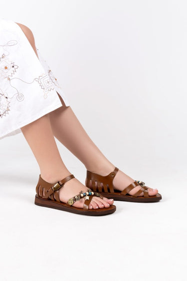 Yuhes İnna Kadın Hakiki Deri Taşlı Sandalet