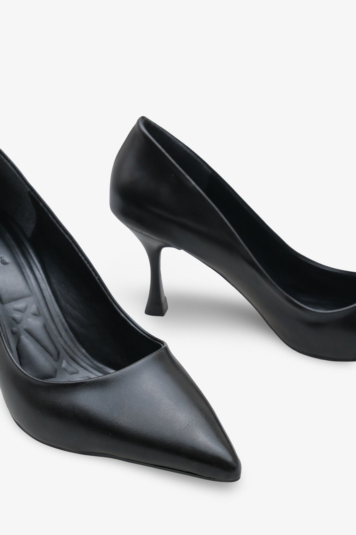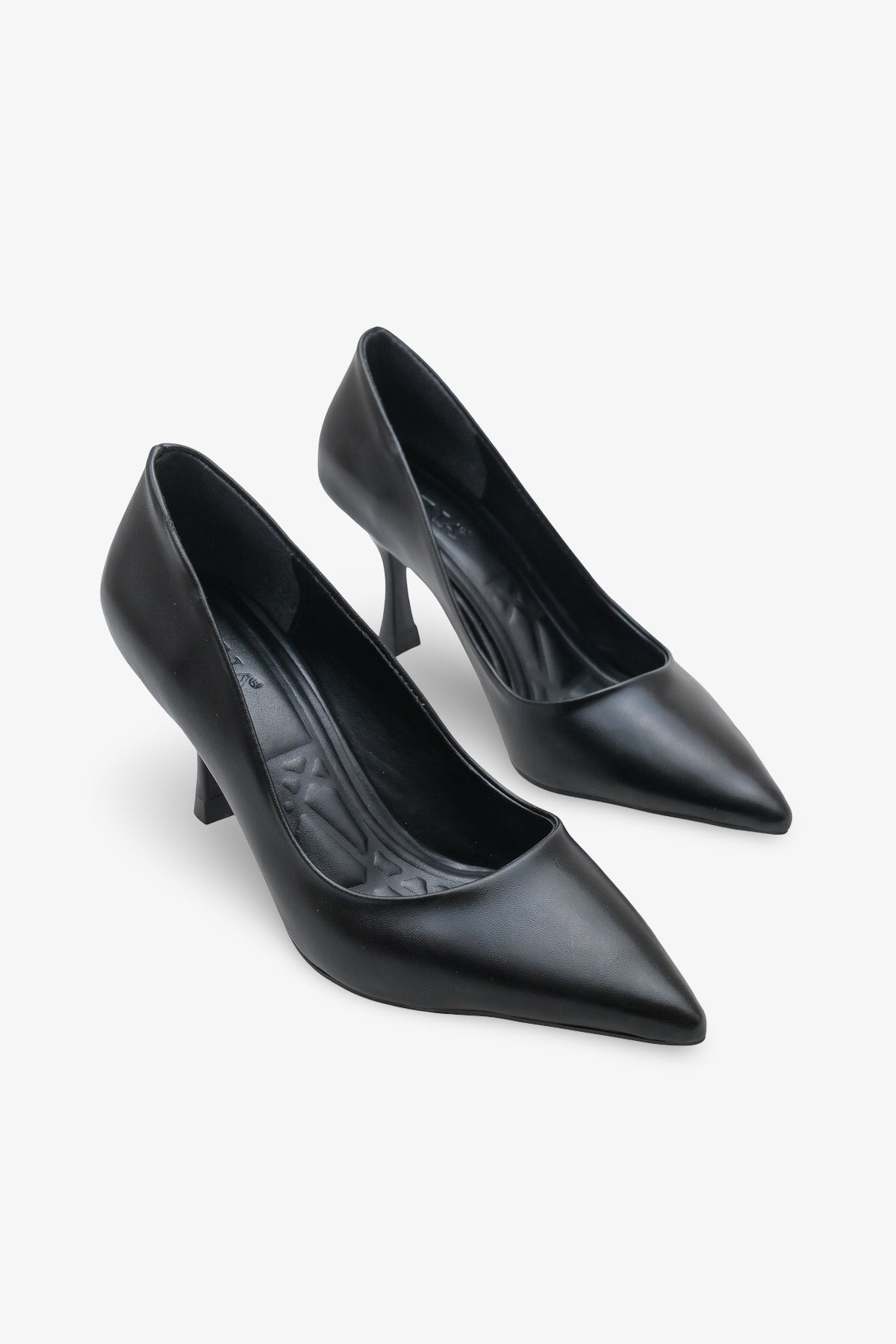 Siyah rengiyle bütünleşen siyah tonu, sivri burun tasarımıyla birleşerek bacak boyunu olduğundan daha uzun ve zarif gösterir.