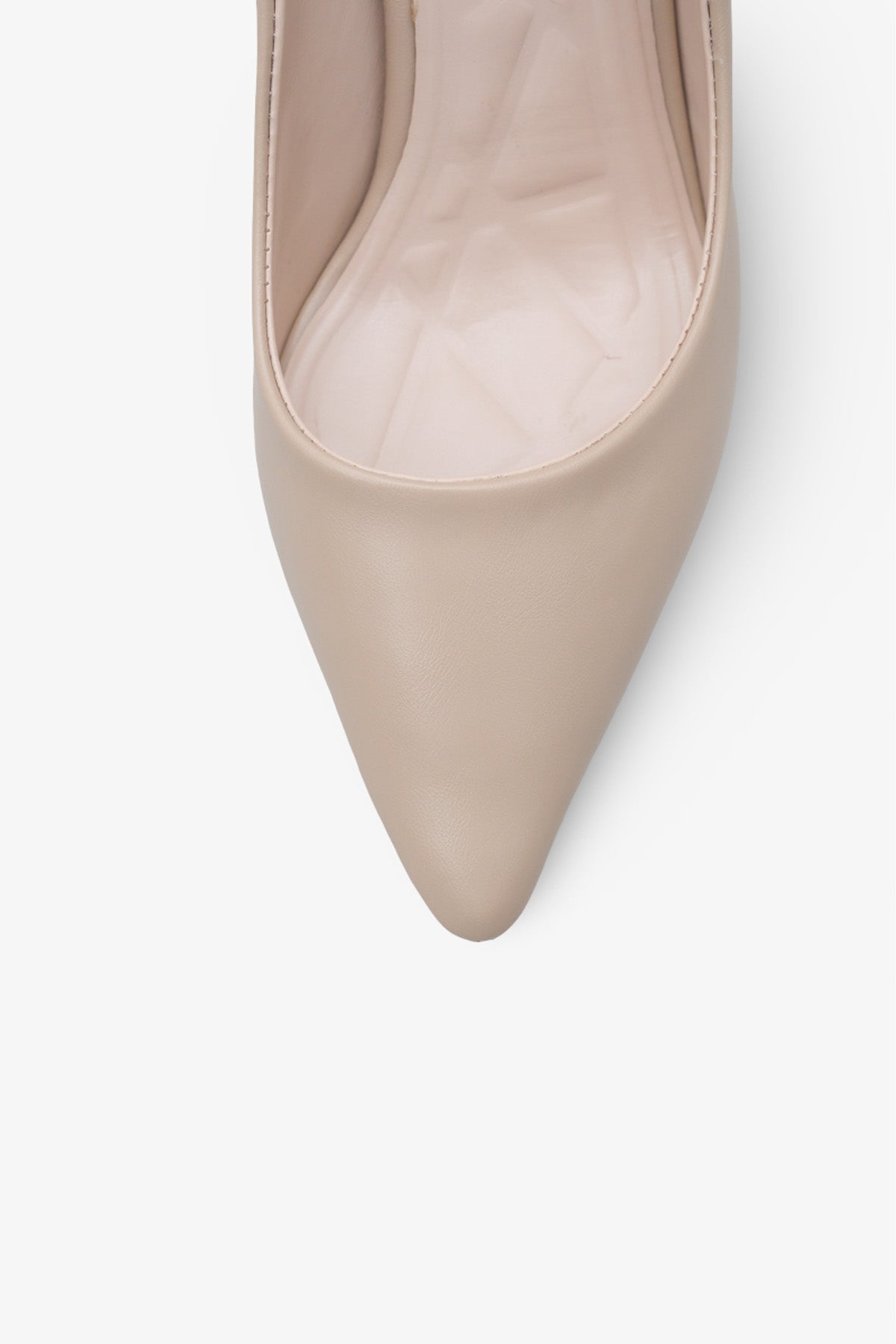 Ten rengiyle bütünleşen nude tonu, sivri burun tasarımıyla birleşerek bacak boyunu olduğundan daha uzun ve zarif gösterir.