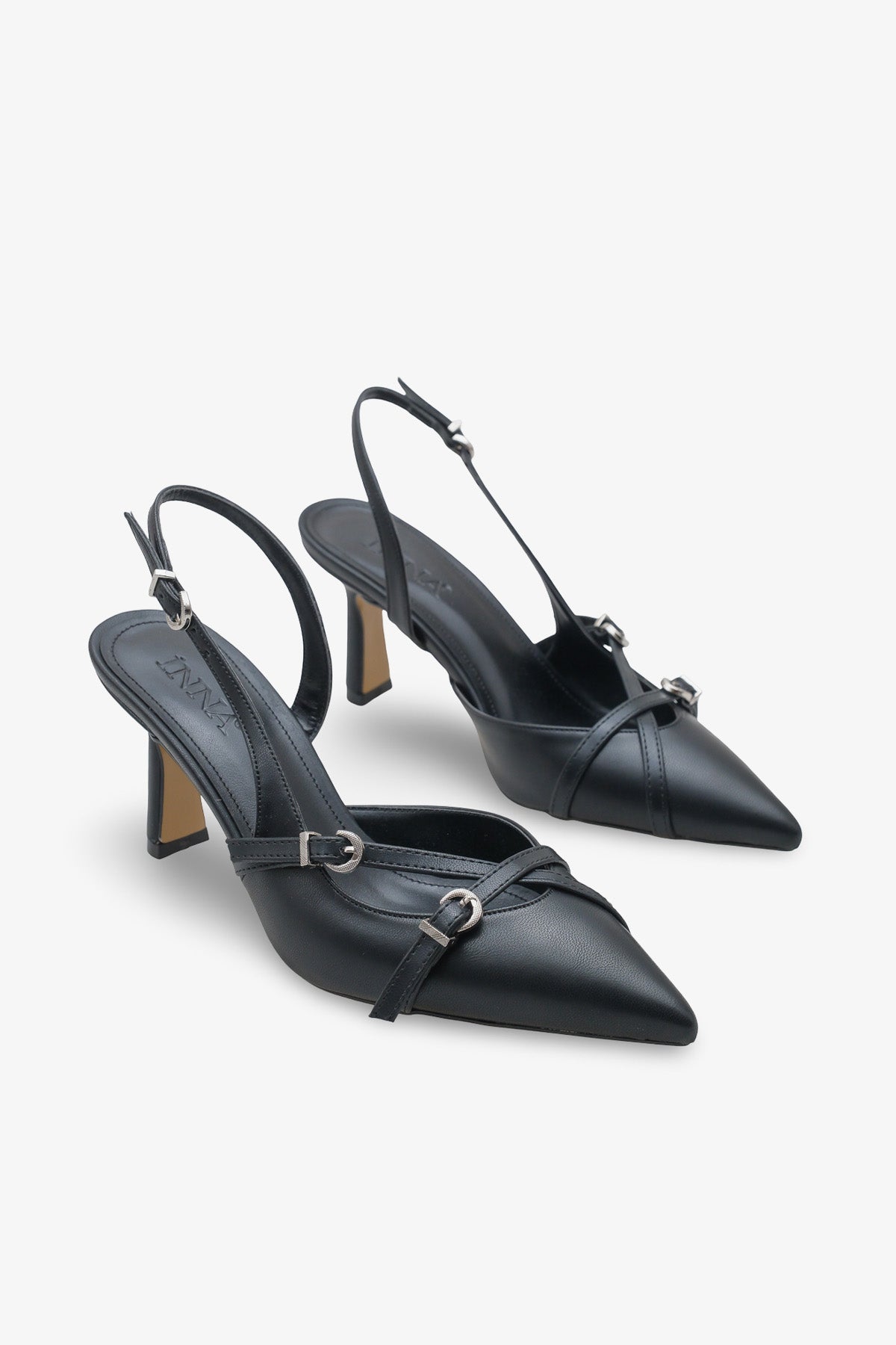 Ofis pantolonlarından midi eteklere kadar geniş bir kombin yelpazesine uyum sağlayan İnna Recca topuklu ayakkabı, stil sahibi kadınların günlük favorisidir.