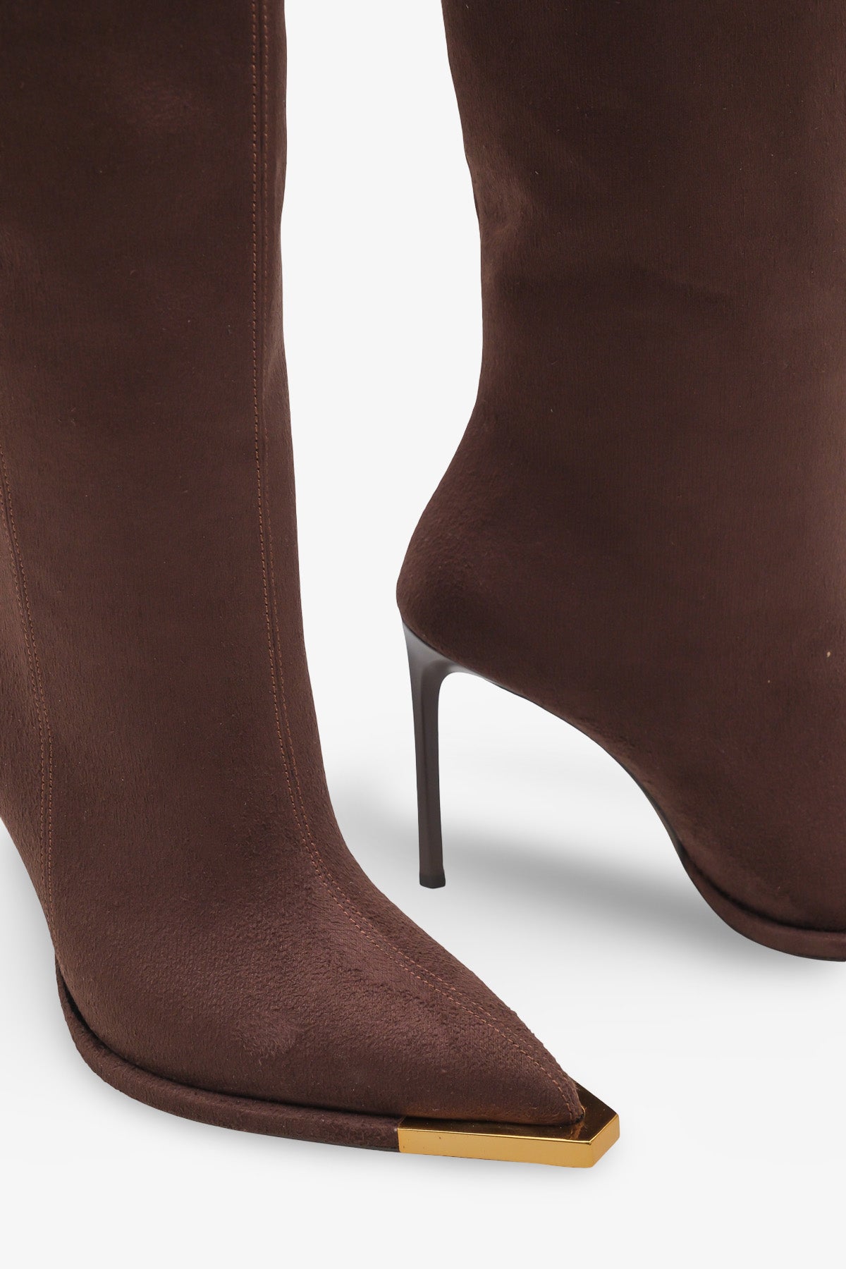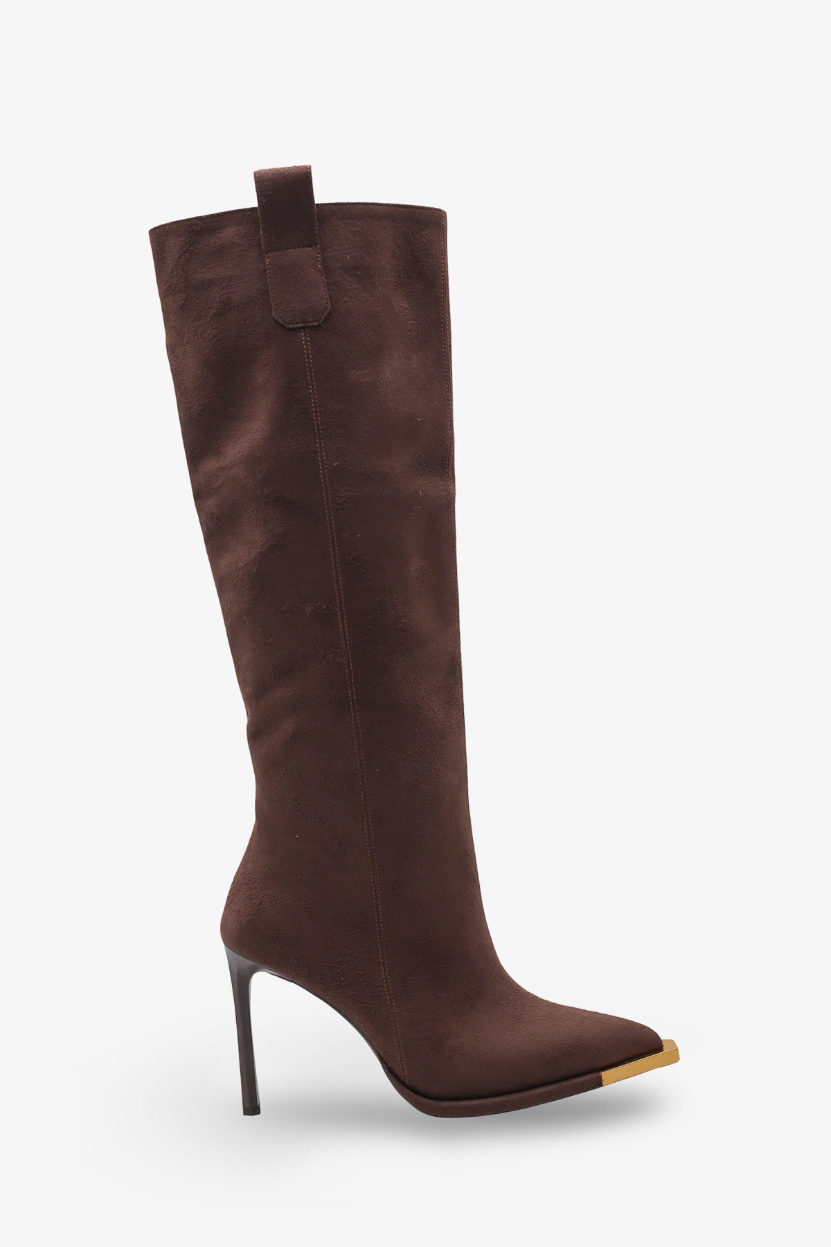 Rivale Kadın Topuklu Çizme - Kahve Süet