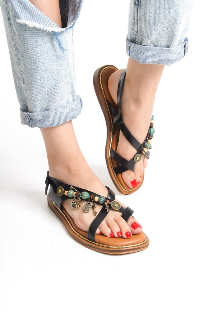 Bentas İnna Kadın Hakiki Deri Taşlı Sandalet