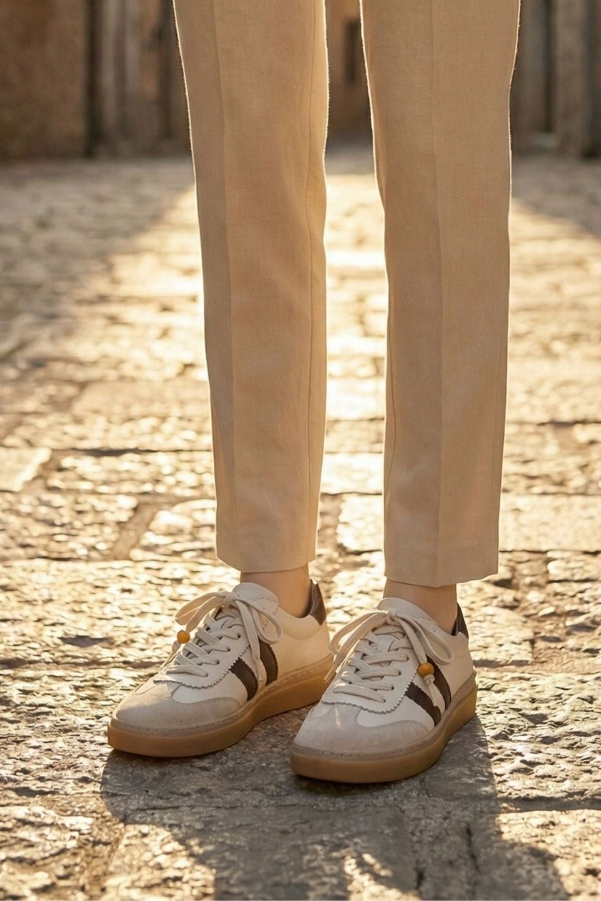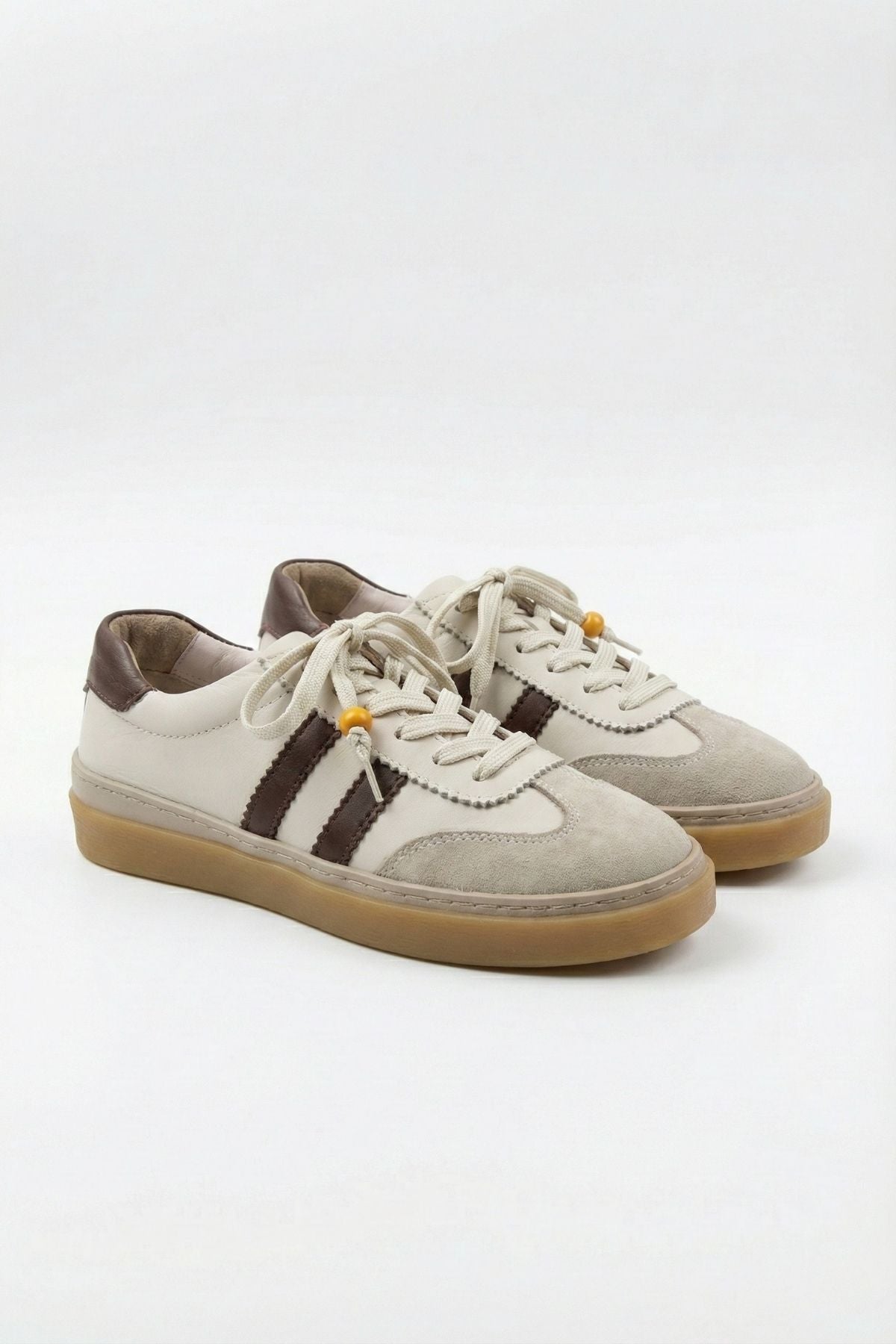 Belis Hakiki Deri Kadın Sneaker - Bej