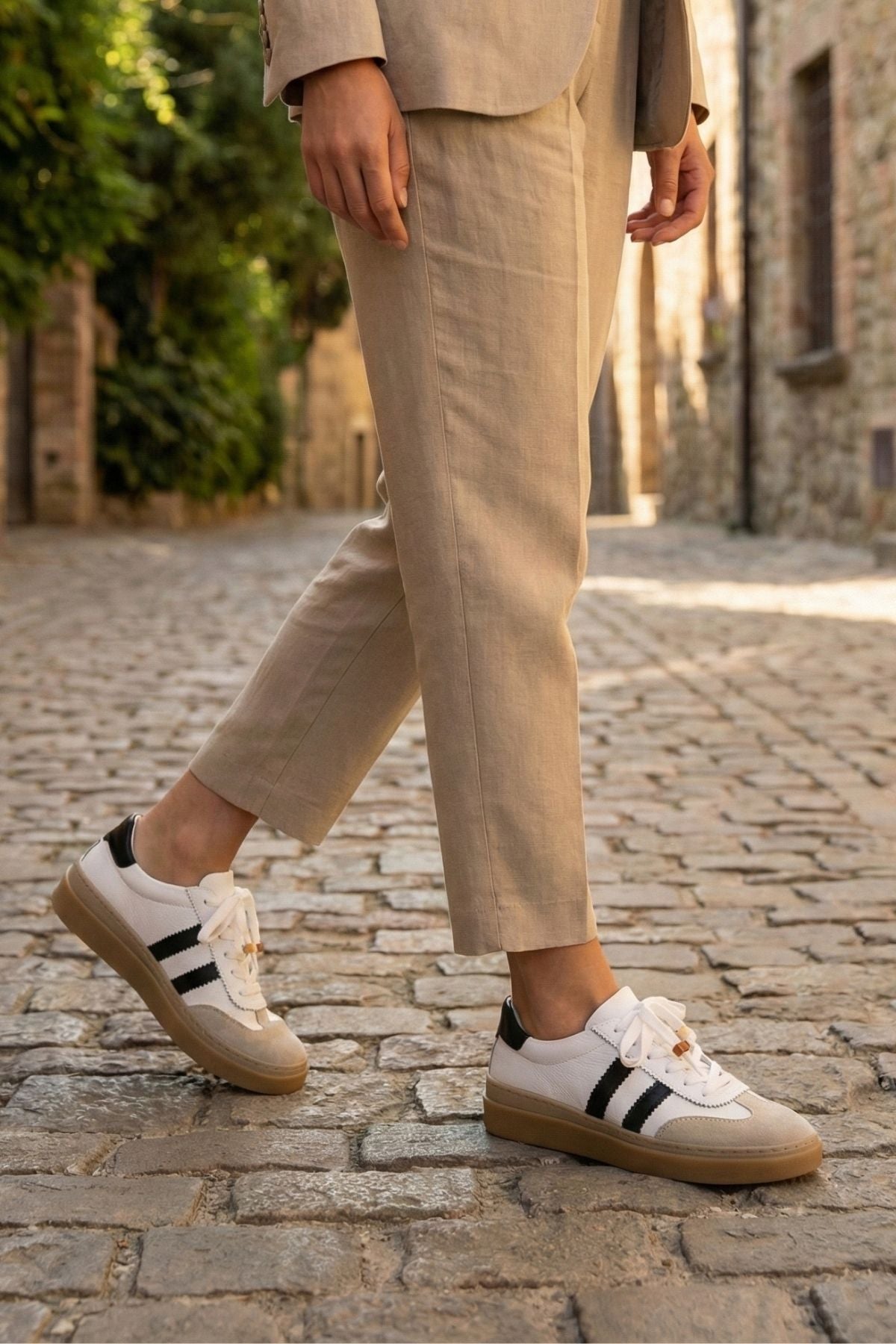 Belis hakiki deri kadın sneaker, dayanıklı yapısı ve şık tasarımıyla günlük kombinlerinize modern ve kaliteli bir dokunuş katar.