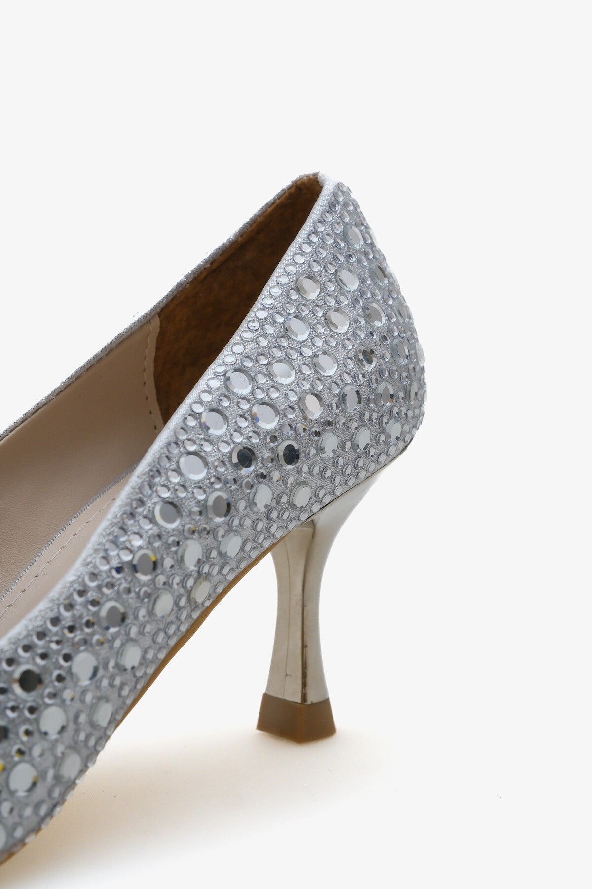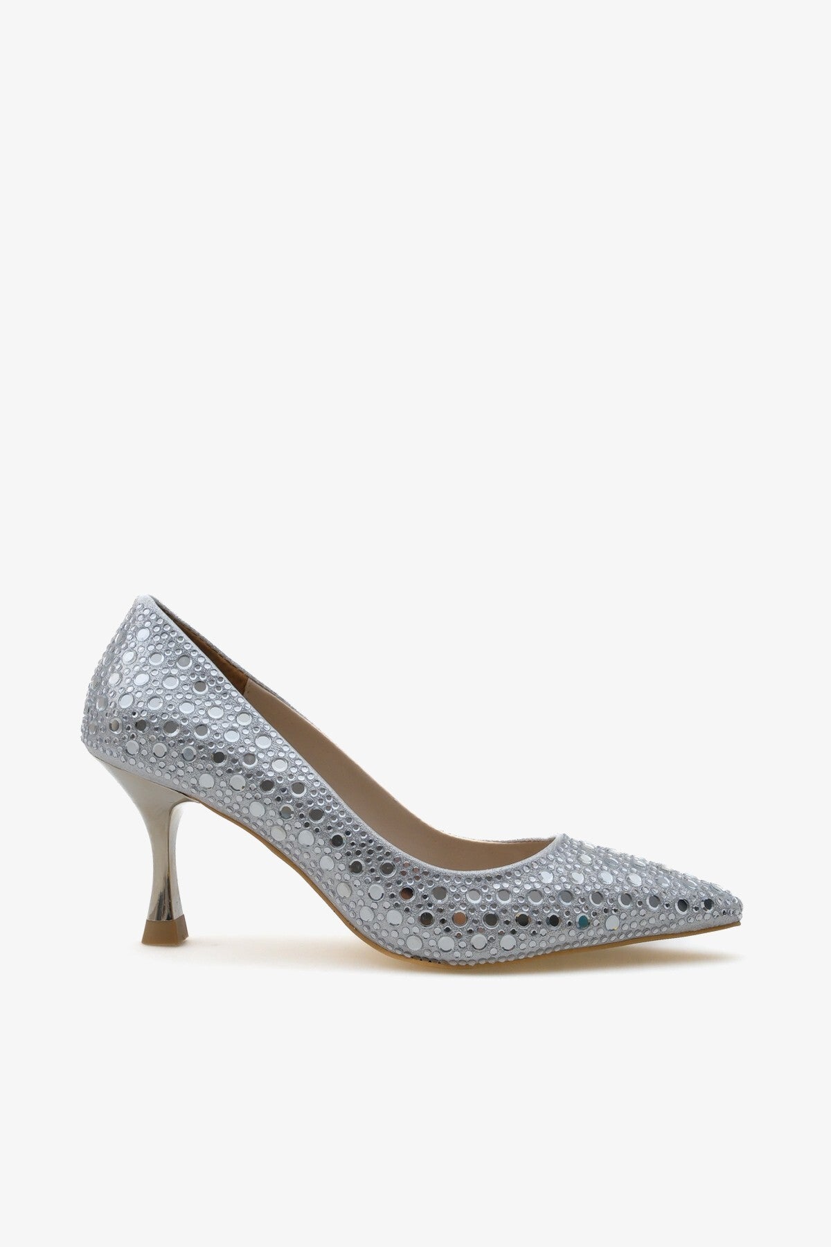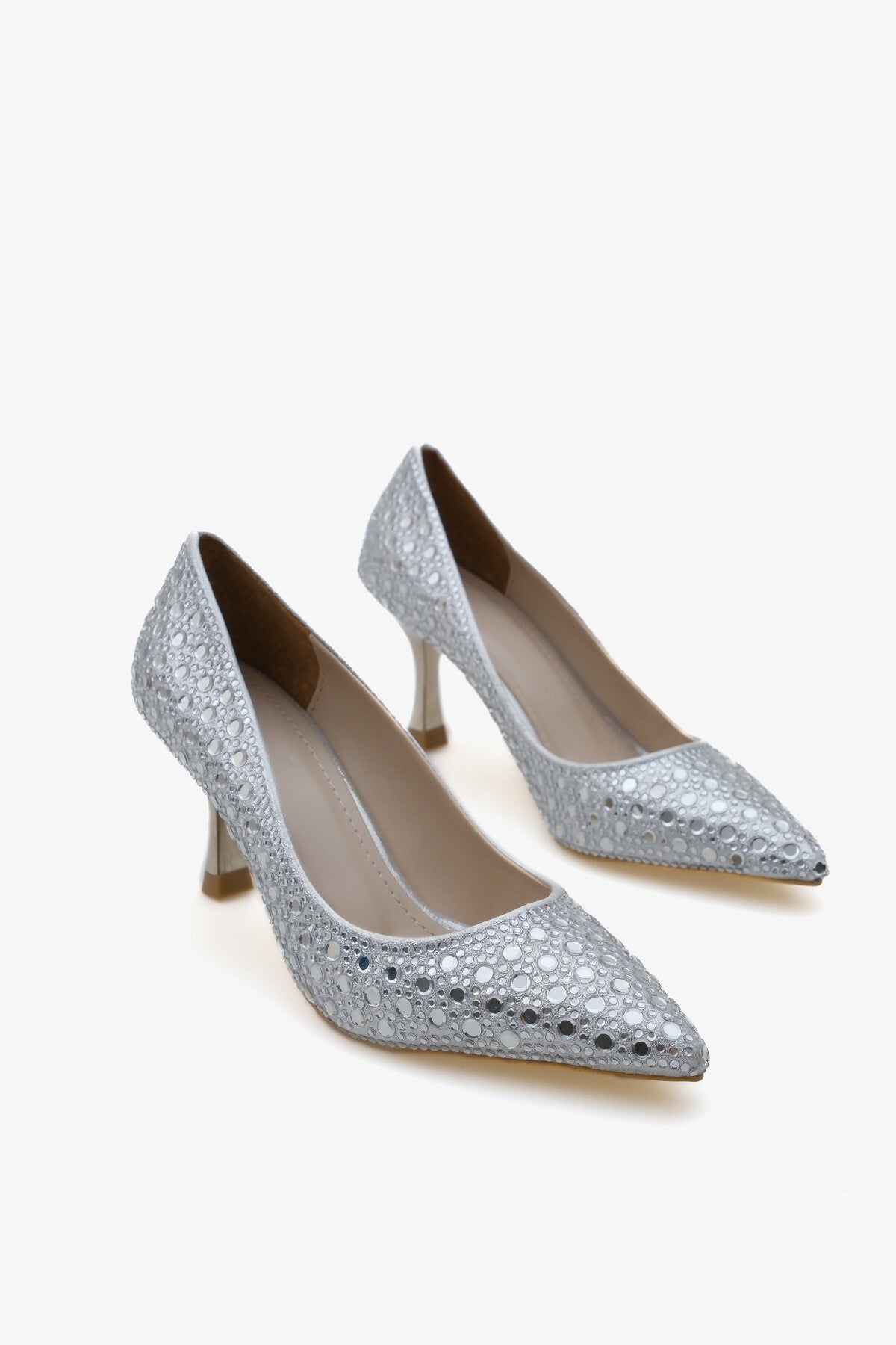 Dica Kadın Abiye Taşlı Topuklu Ayakkabı - Gümüş Taş
