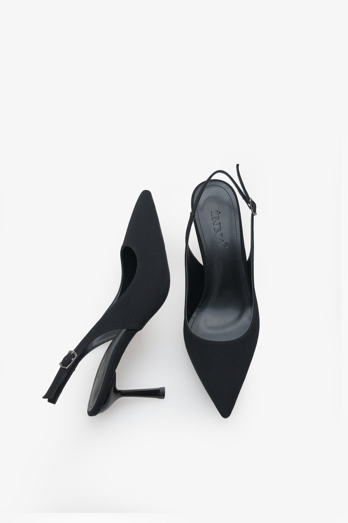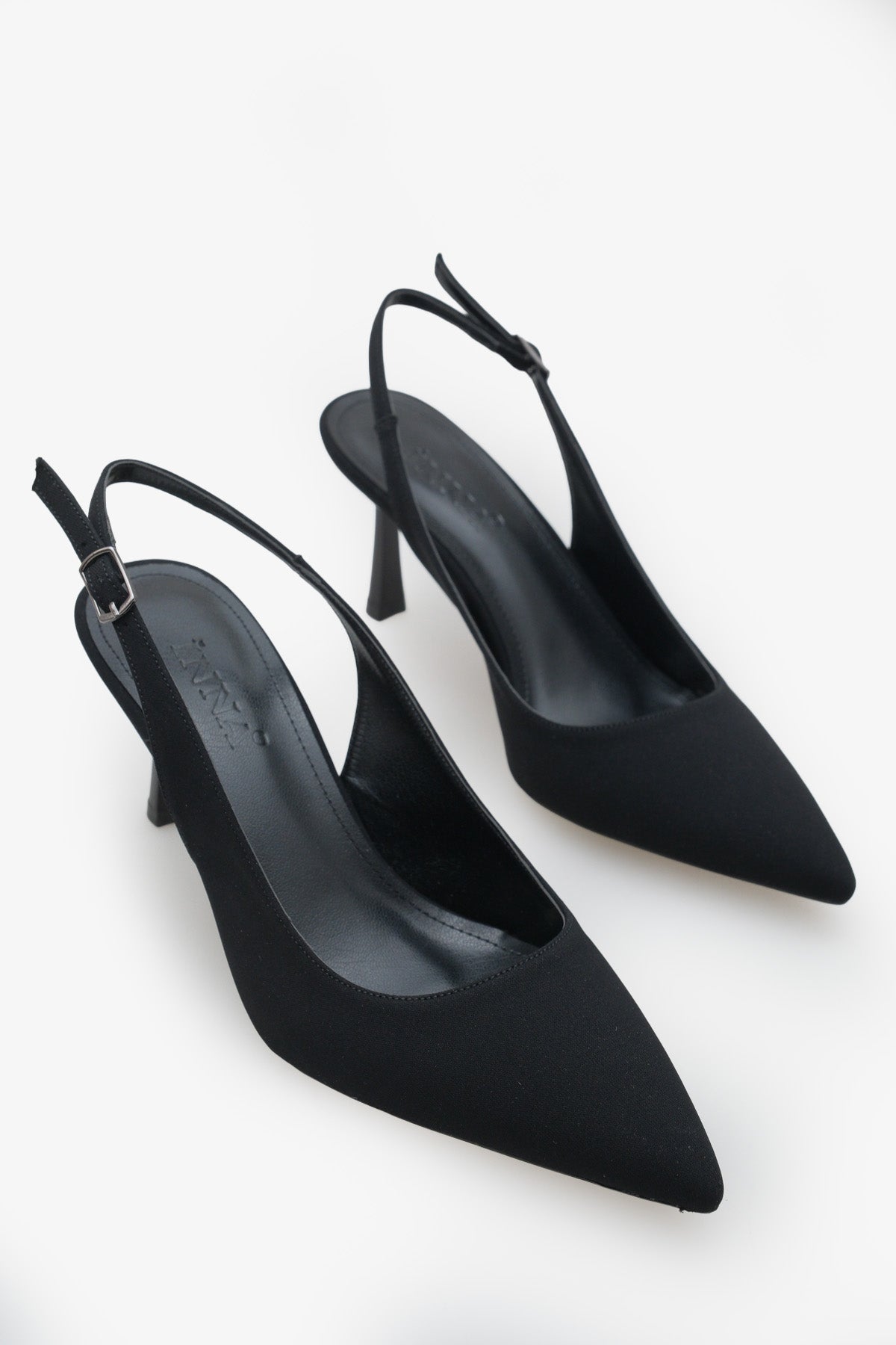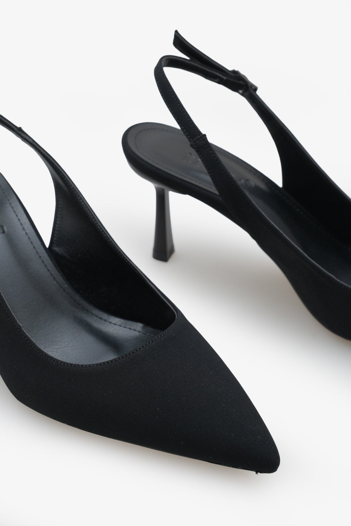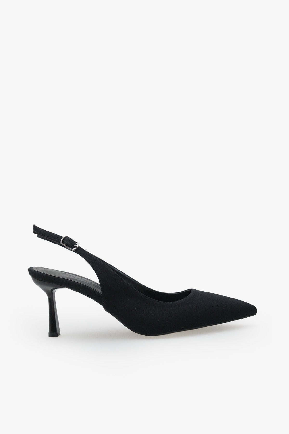 Feminen sivri burun kesimi ve ayarlanabilir bilekten bağlamalı (slingback) form, Elio tasarımının zarif çizgilerini ön plana çıkararak bacak boyunu daha uzun gösterir.
