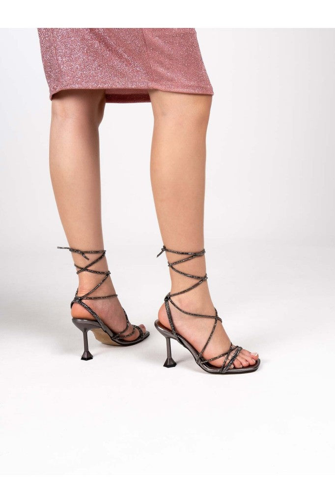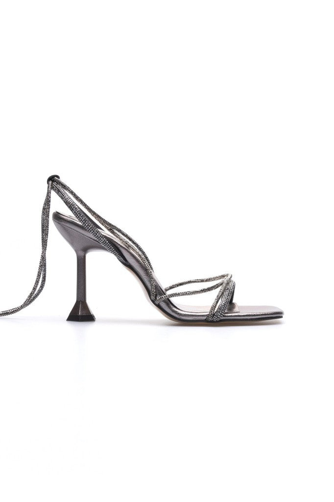 Kunta Kadın Abiye Taşlı Topuklu Ayakkabı - Platin