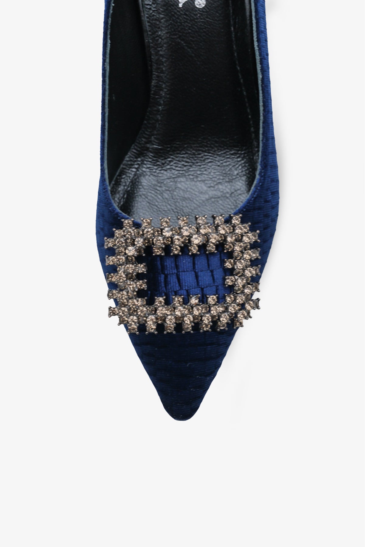 Lunvera Kadife Taşlı Tokalı Kadın Topuklu Ayakkabı - Lacivert