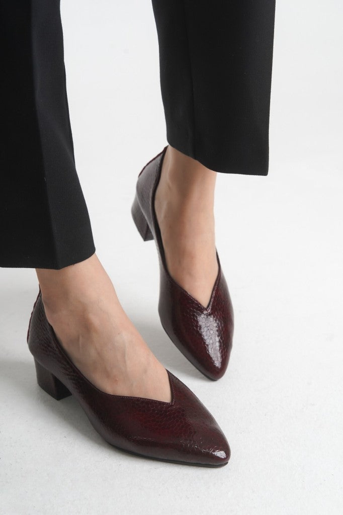 Sudeh Kadın Topuklu Ayakkabı - Bordo Petek