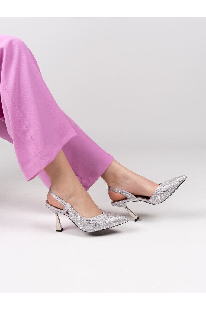 Sundes Kadın Abiye Taşlı Topuklu Ayakkabı - Gümüş