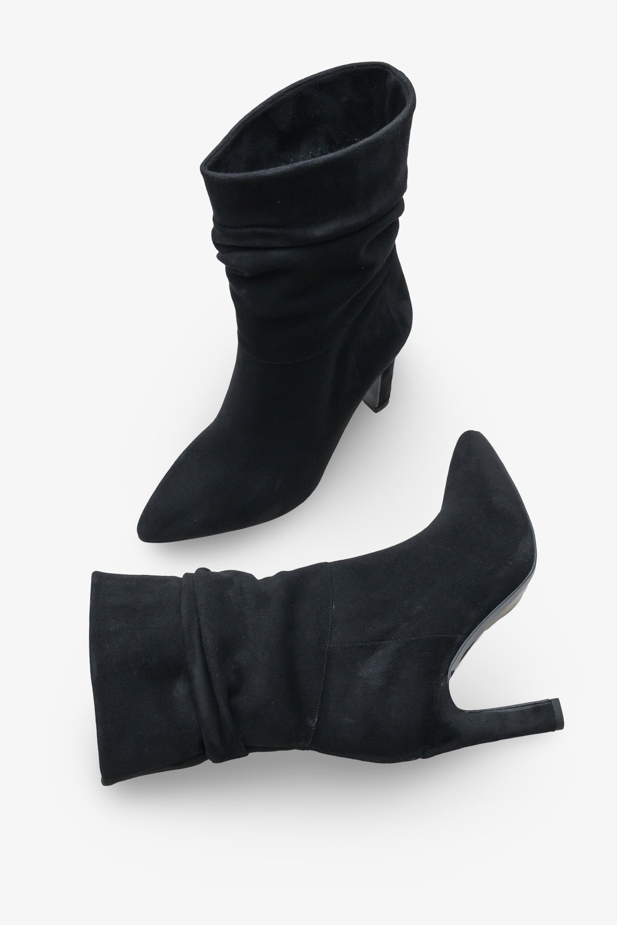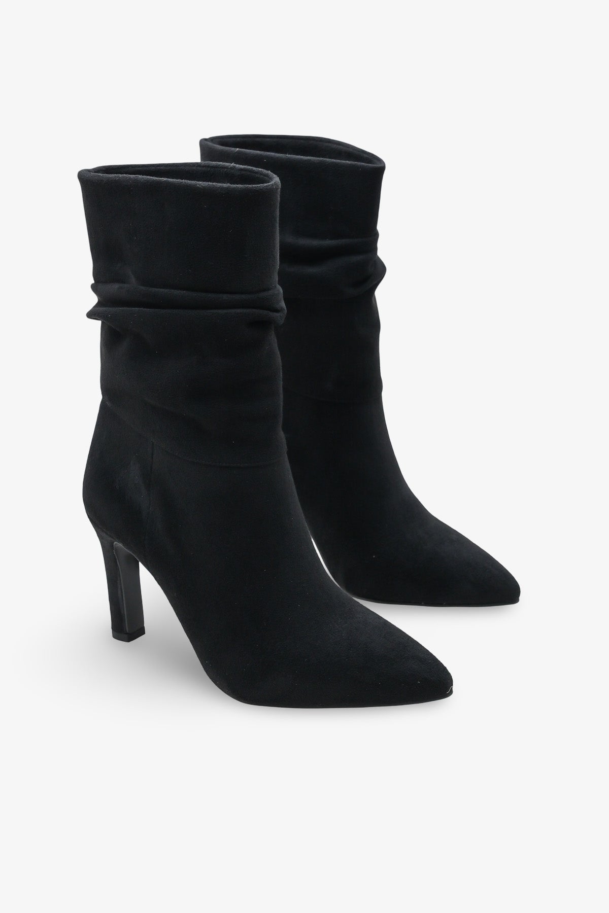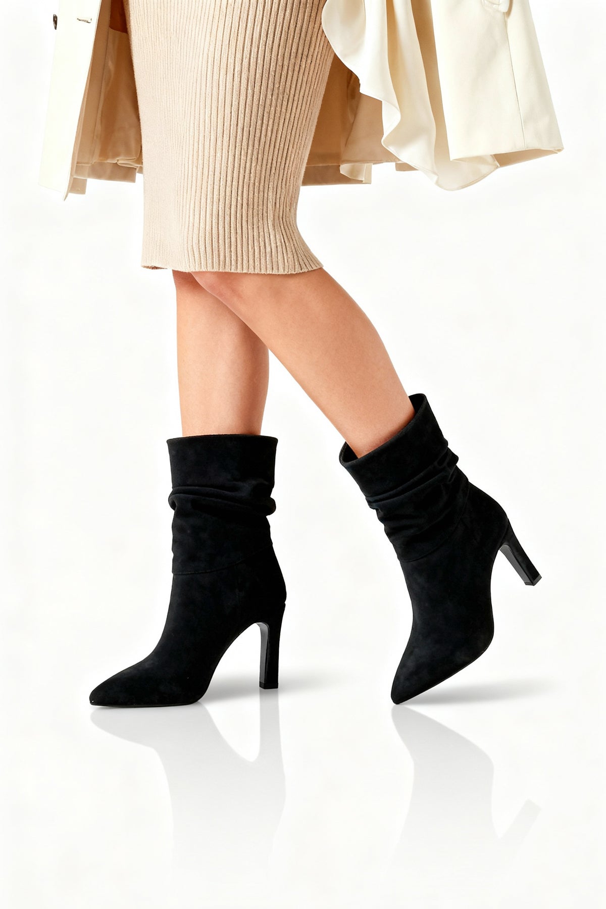 Malira Kadın Büzgü Detaylı Topuklu Bot - Siyah Süet