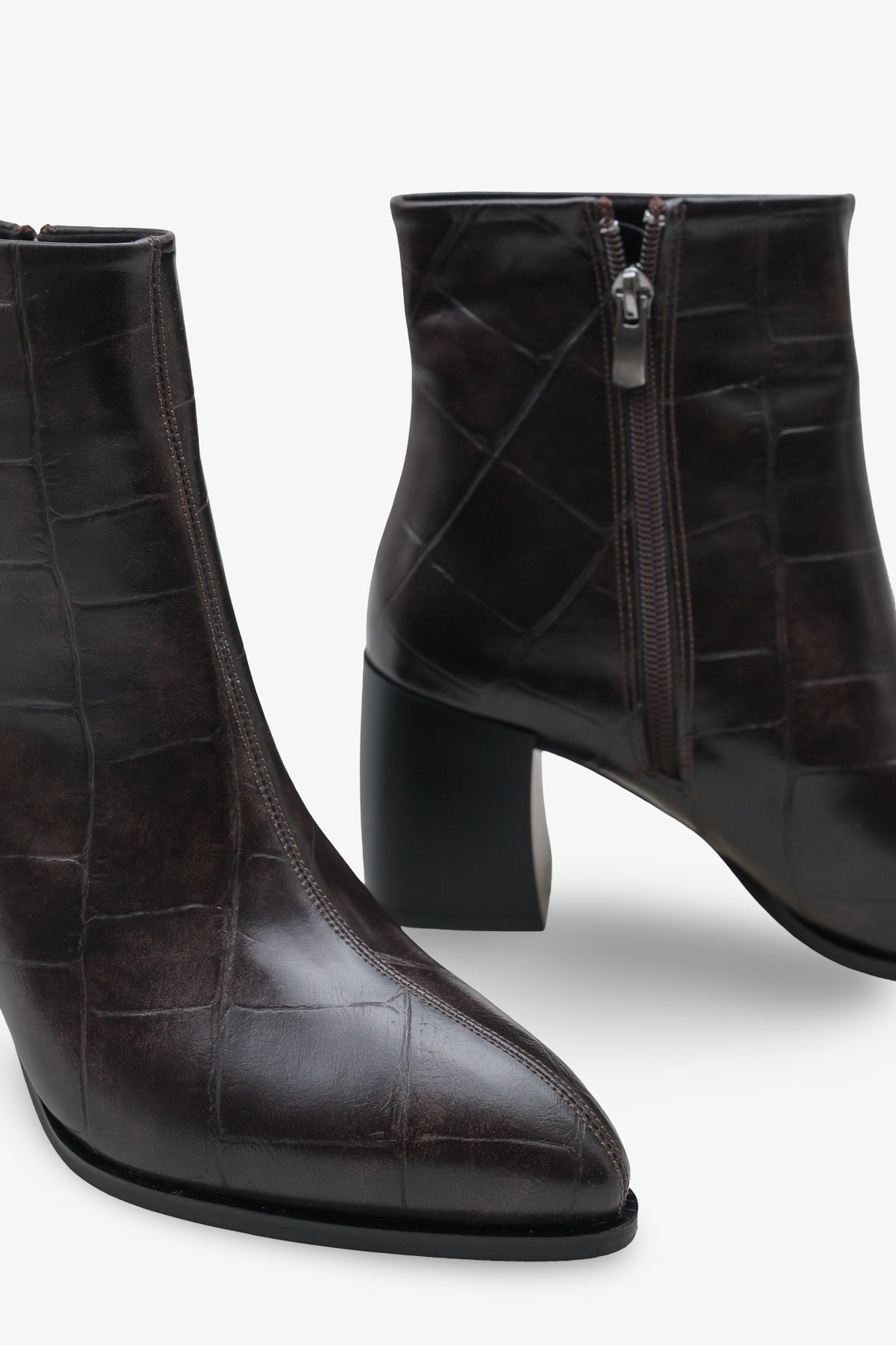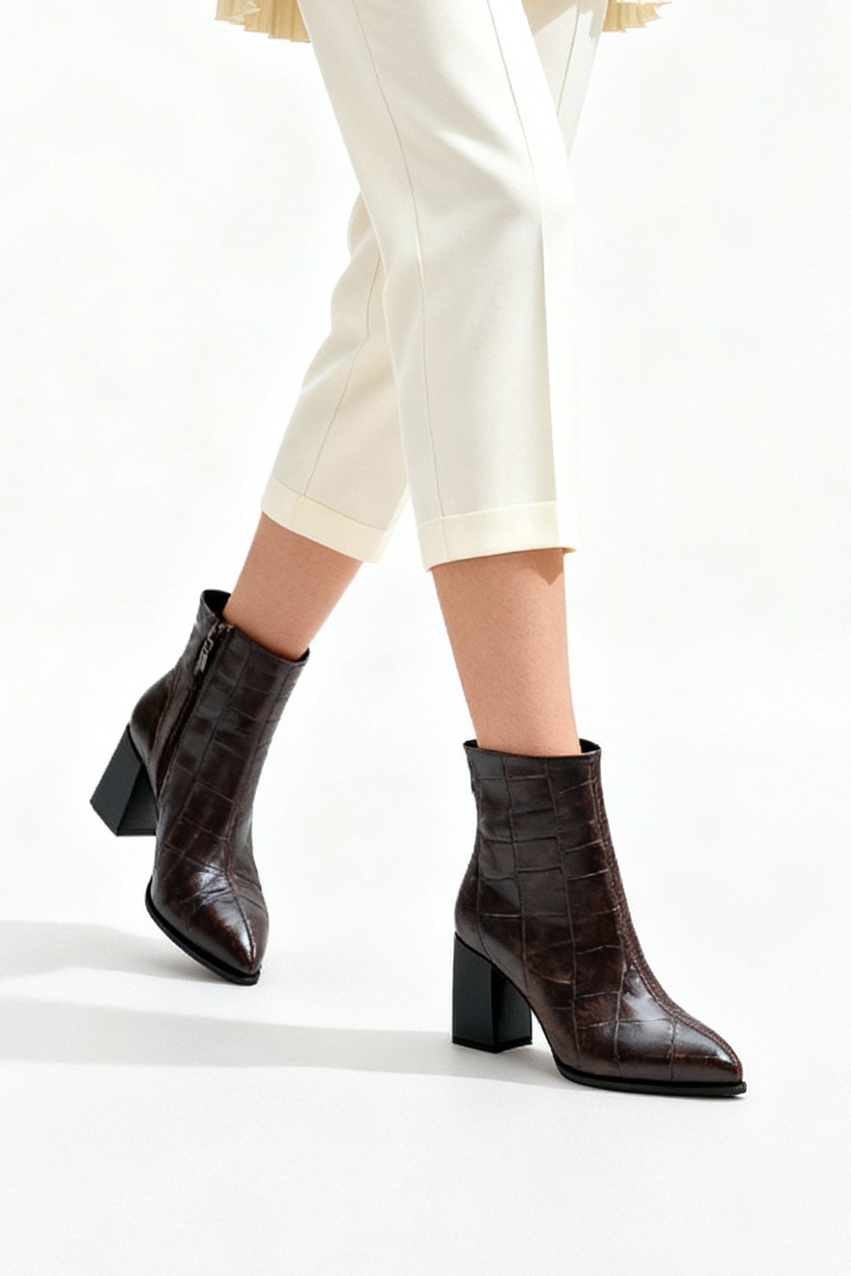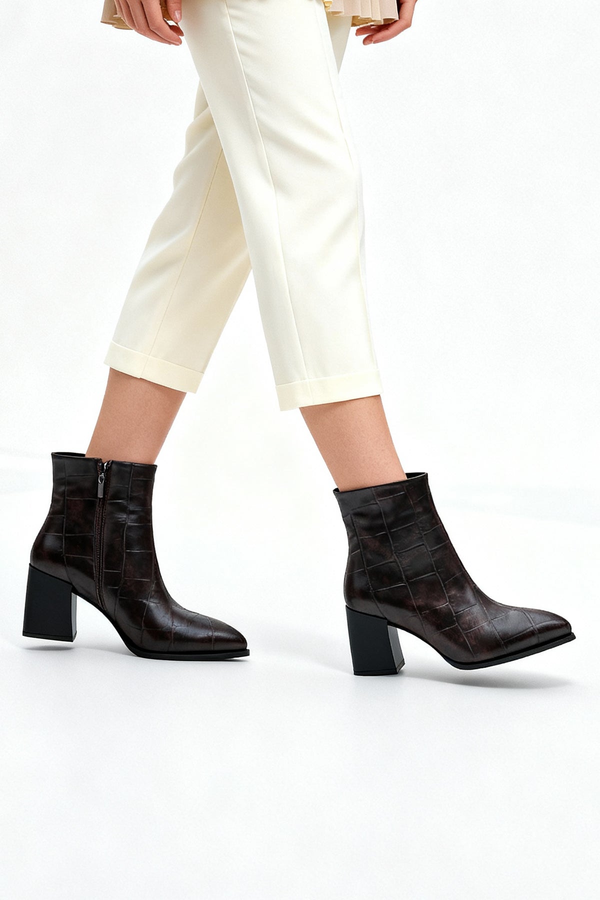 Merta Kadın Topuklu Bot - Kahve Kroko