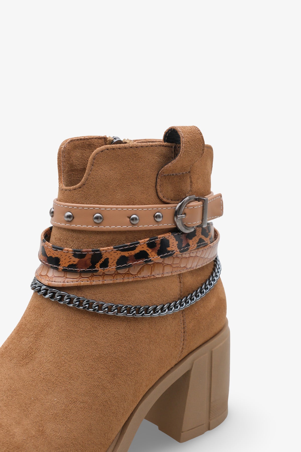 Mojca Kadın Zincir Detaylı Topuklu Bot - Taba Süet