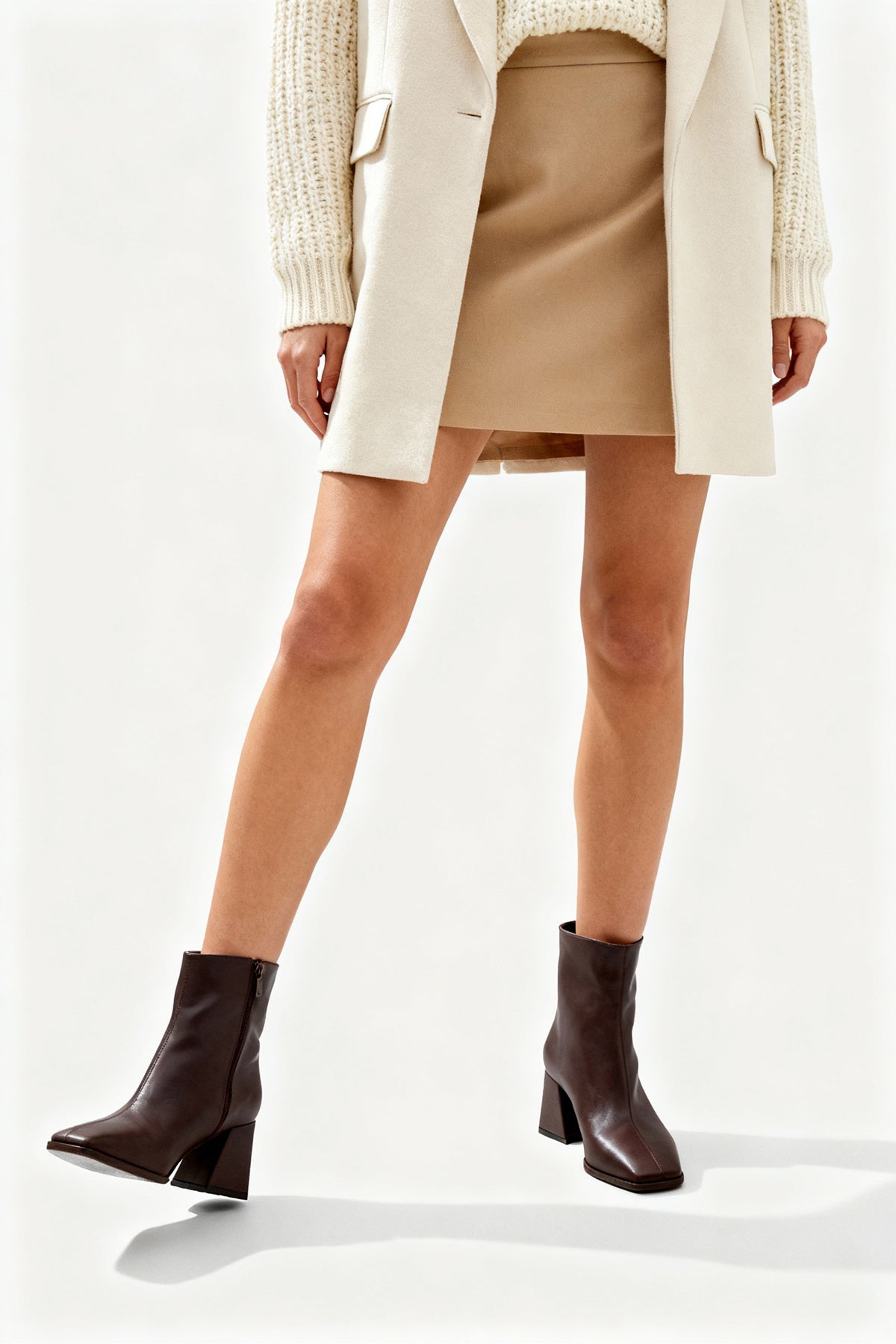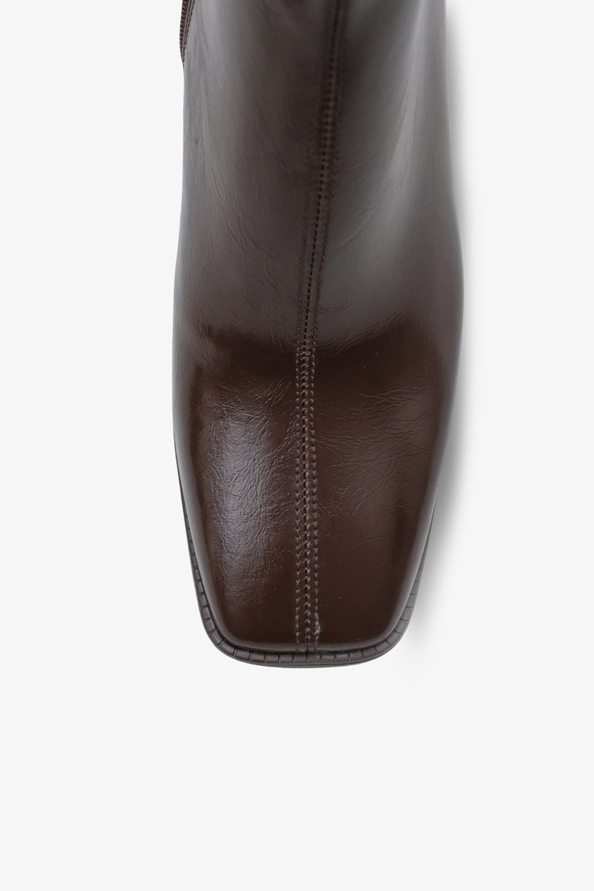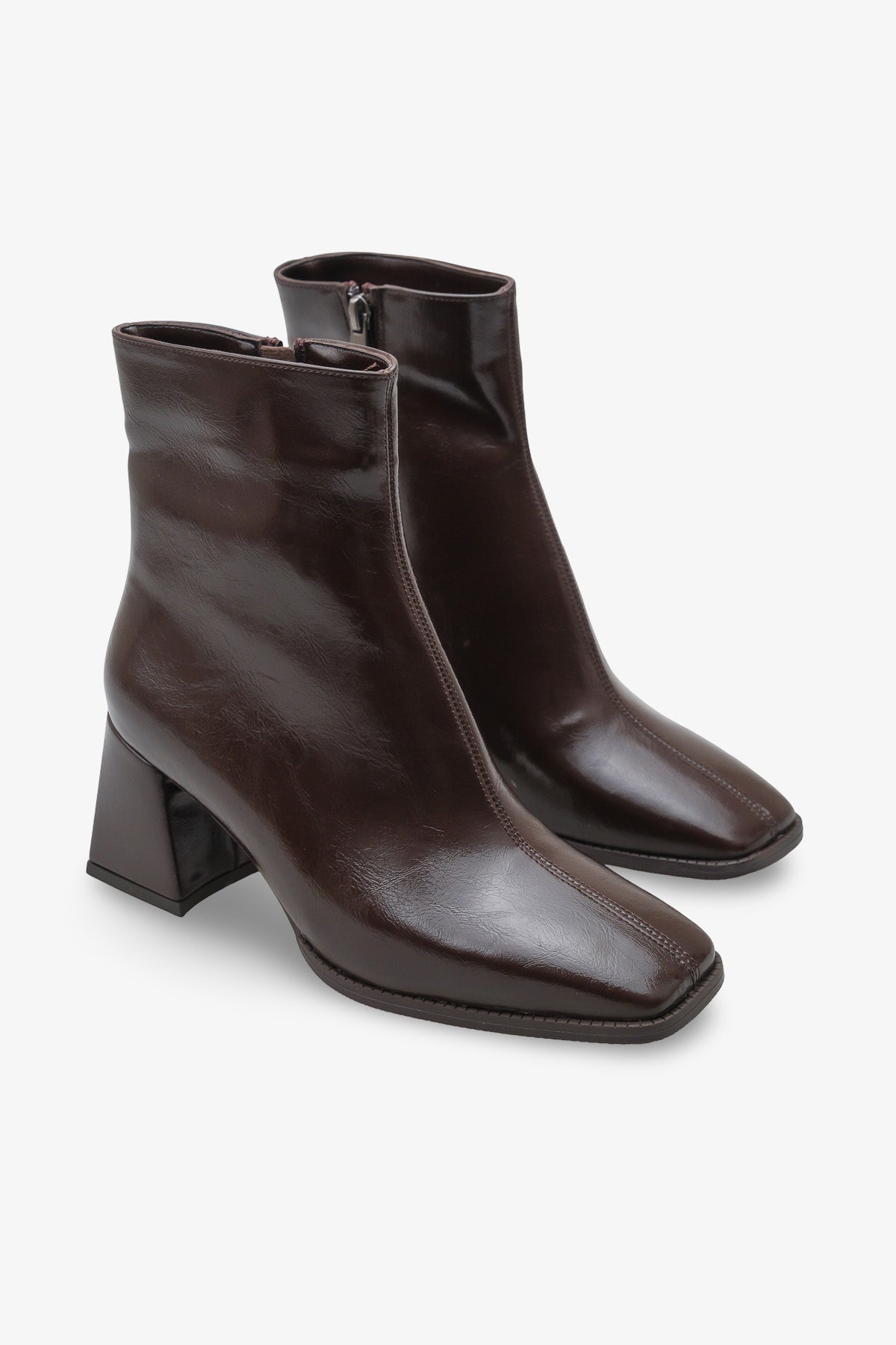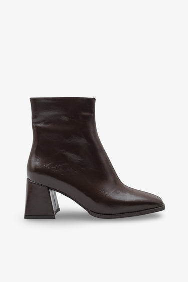 Lenas Kadın Kare Burun Topuklu Bot - Kahve Kırışık