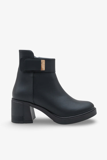 Ludmila Kadın Tokalı Günlük Topuklu Bot - Siyah