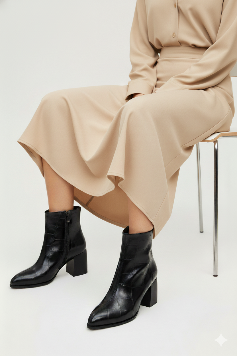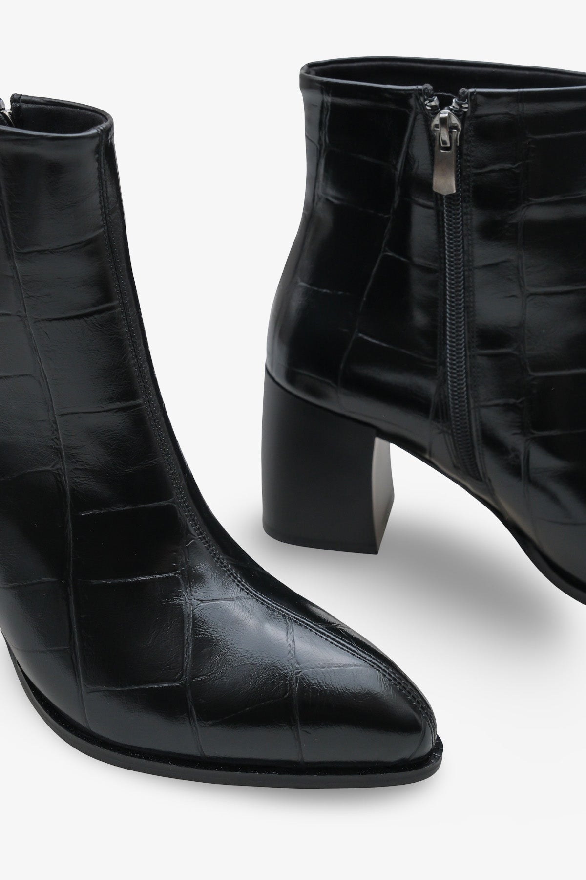 Merta Kadın Topuklu Bot - Siyah Kroko