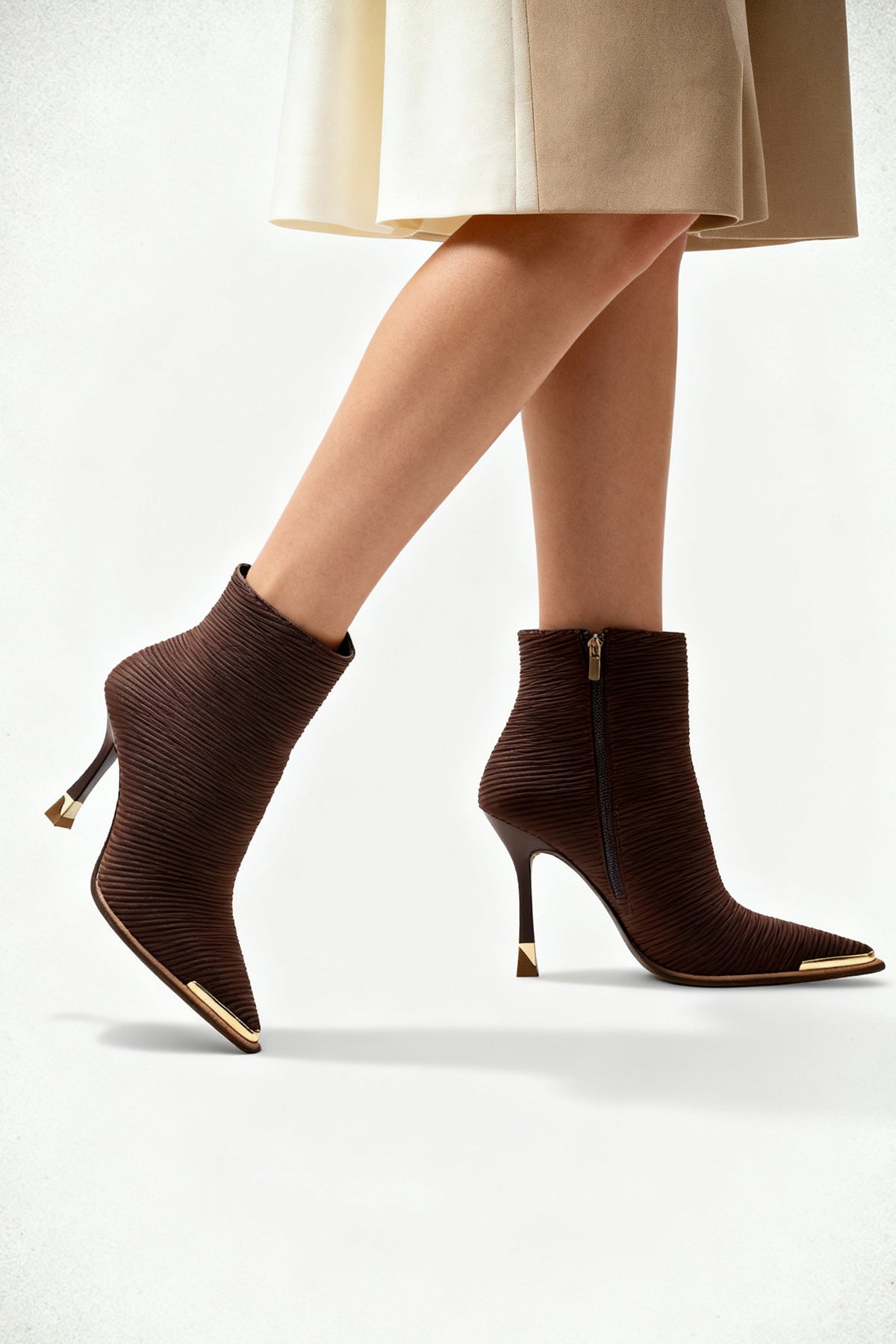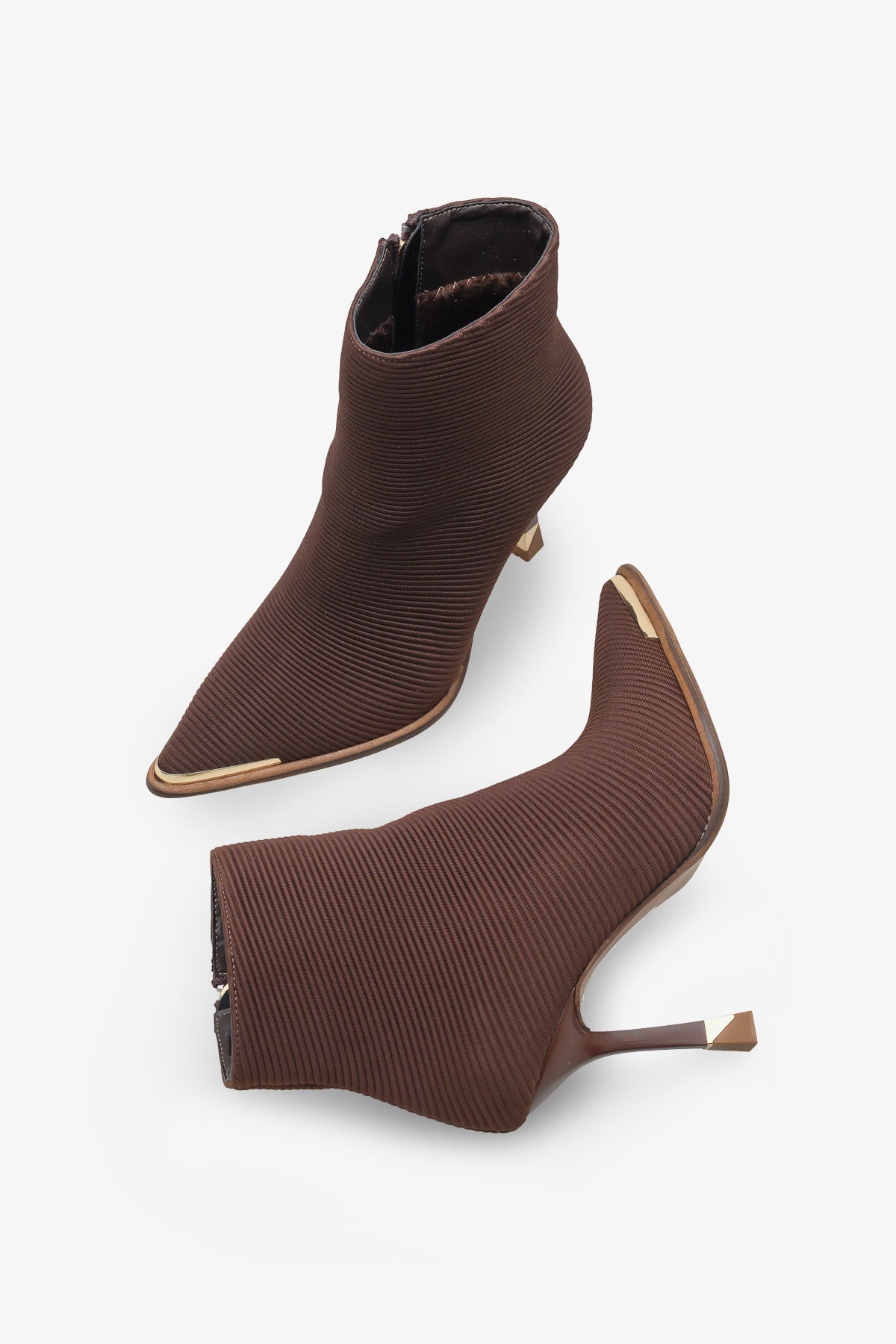 Zana bot, esnek ve fit bir görünüm sunan şık kahve örgü (fitil) dokulu kumaş malzemeden üretilmiştir.