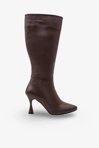 Lavena Kadın Hakiki Deri Sivri Burun Topuklu Çizme - Kahve